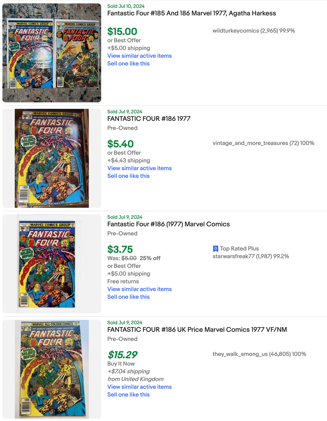 Keep an eye out for Fantastic Four #185 and #186 which the series will draw heavily from. Fantastic Four #185 contains the 1st appearance of Nicholas Scratch, a warlock and the son of Agatha Harkness, and Fantastic Four #186 includes the first appearance of the Salem Seven, a coven of witches that appear at the end of the trailer. You might be able to find these high-grade for around $5 if you're willing to dig through boxes. Raw copies have been selling in the $3.75 to $15 range on eBay since the trailer dropped.