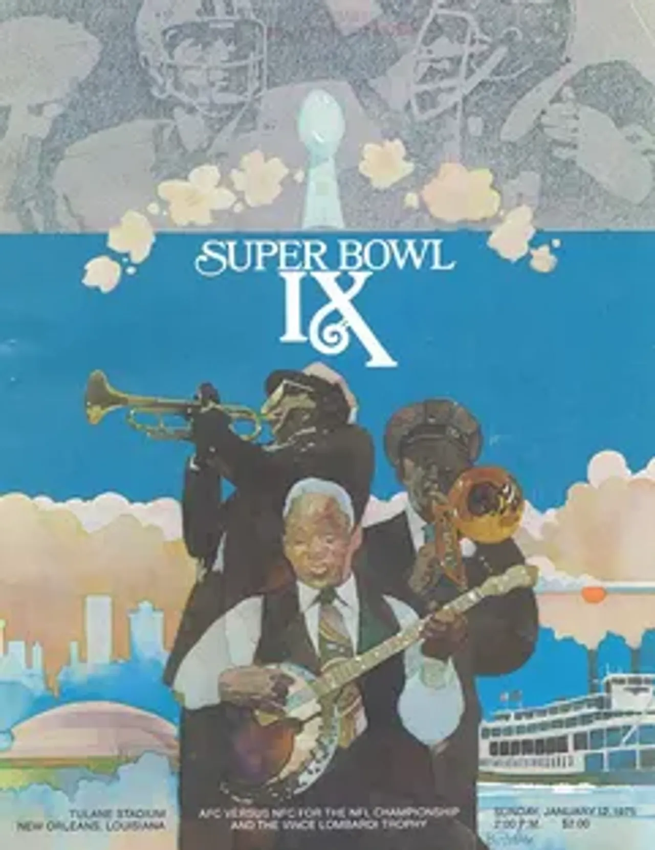 Super Bowl IX. The first of 6 total Super Bowl victories for the Pittsburgh Steelers. They would win Super Bowl X as well the following year. Whoever placed the only bid and nabbed the top of pop 9.0 for $600 in August of last year in an eBay auction is a big winner too. Hold onto that and don't fumble.