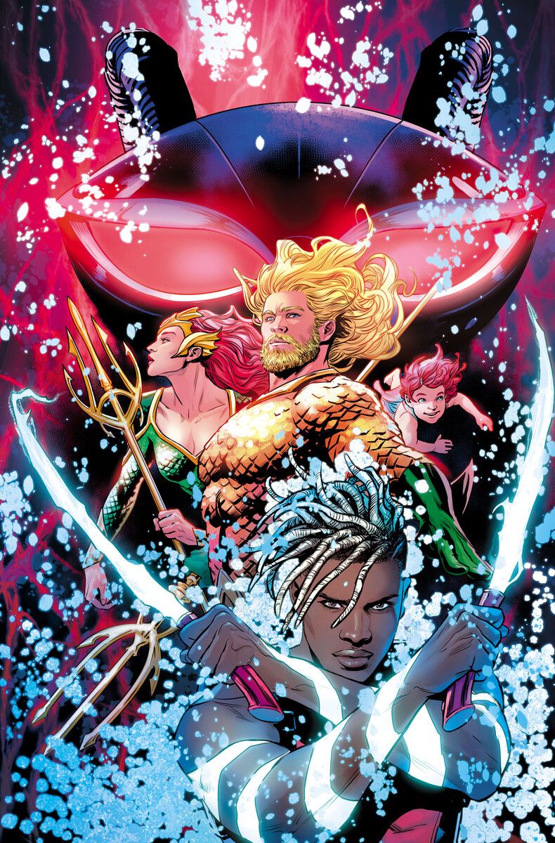 And the final issue of Aquaman: The Becoming leads directly into the Aquamen launch as well! Alongside family old and new, Jackson Hyde races to stop the next big undersea terrorist attack—and this time, Mera's the target! But if he hopes to overcome his greatest enemy yet and protect the people he loves most, he'll have to stop waiting for someone to give him permission to lead. It's time for Jackson to reach out and take the mantle of Aquaman!