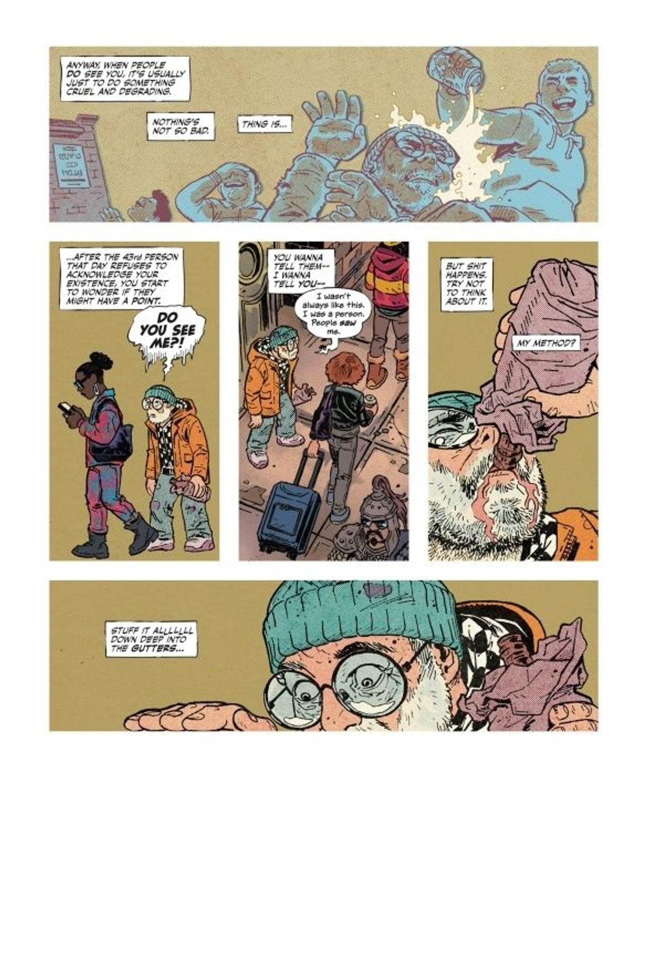 In Assorted Crisis Events #8, a homeless comic book artist falls into the gutters—literally! Can Wally find his way back to life and reality, or is he lost in the blank white space between panels forever?
