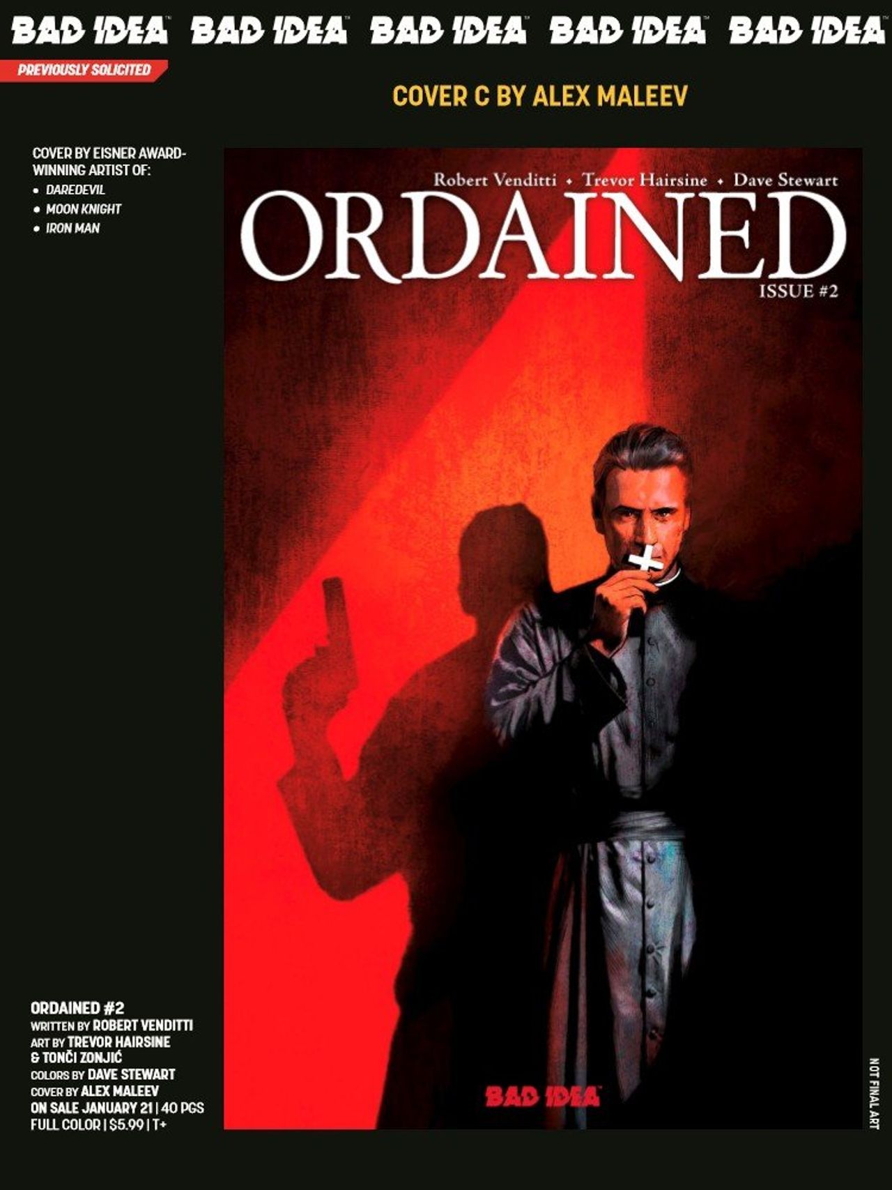 See the catalog for previews, a first-look at jaw-dropping covers from industry superstars like Eisner Award-winning artist Alex Maleev, Eisner Award-winning Andrea Sorrentino, Eisner-nominated Jorge Fornés, superstar artists Jonathan Marks Barravecchia and more!
