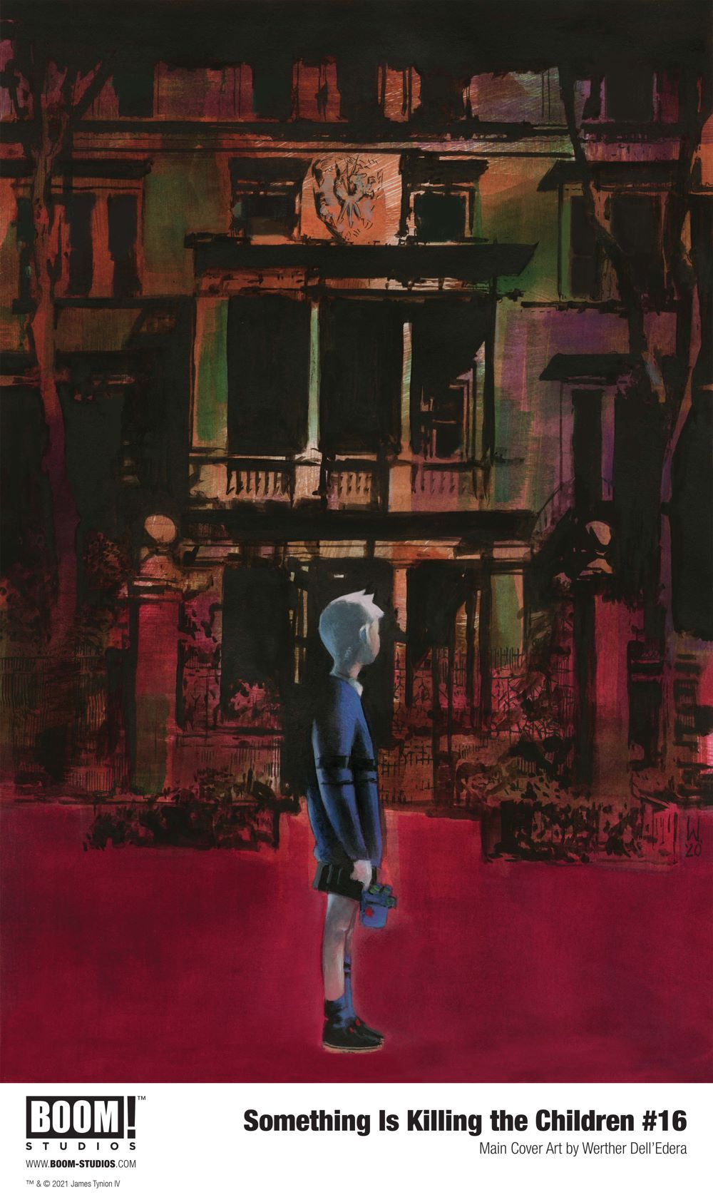 Media Release -- BOOM! Studios today announced SOMETHING IS KILLING THE CHILDREN #16, the launch of a brand new story arc in the Eisner Award-nominated horror series from GLAAD Award-winning author James Tynion IV (The Woods, Batman), artist Werther Dell'Edera (Briggs Land), colorist Miquel Muerto (Bury the Lede), and letterer AndWorld Design (Martian Manhunter), about Erica's early experiences with the House of Slaughter and the start of her monster hunting career... before the horrifying events that brought her to Archer's Peak.