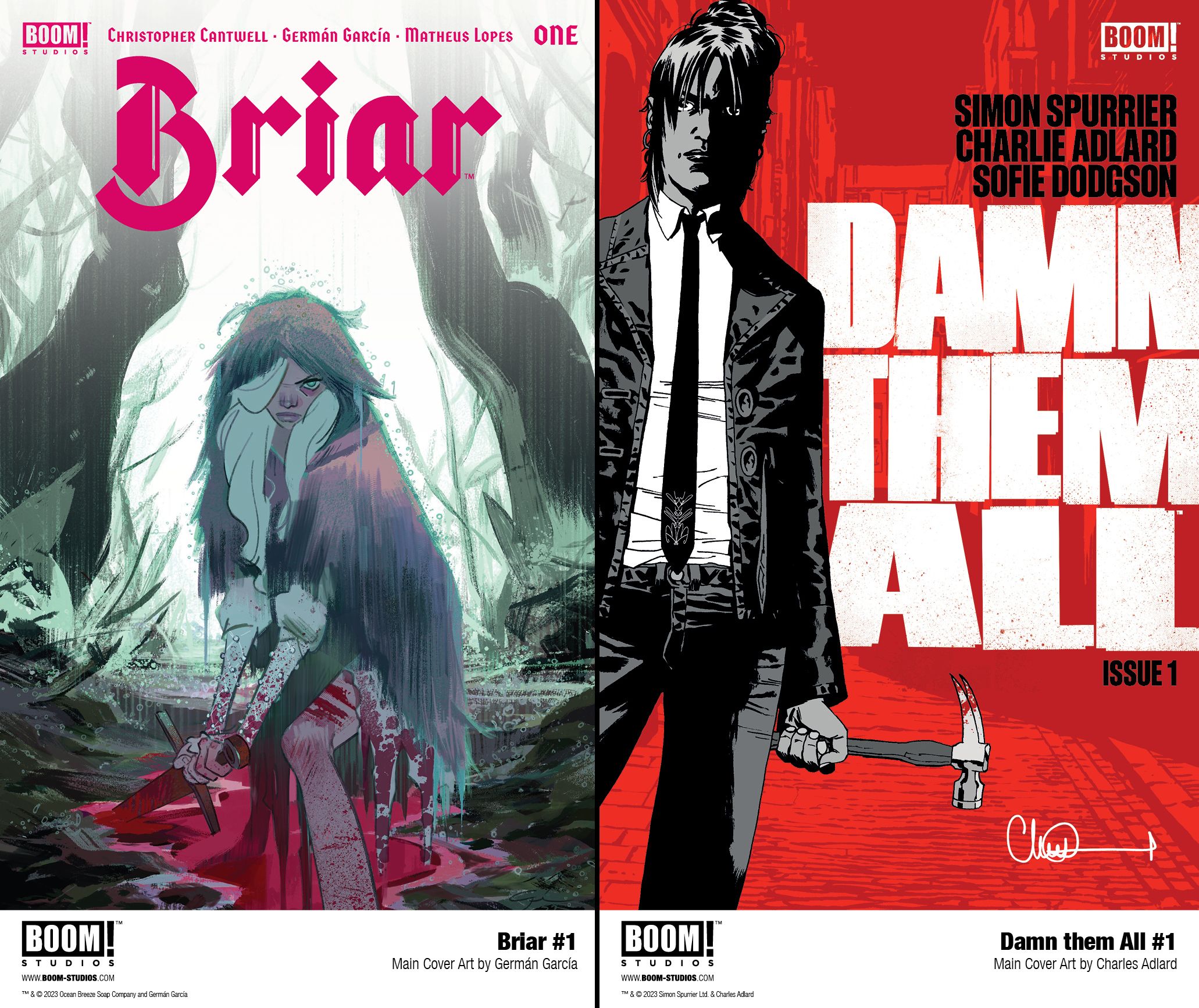BRIAR and DAMN THEM ALL are releases from BOOM! Studios' eponymous imprint, home to critically acclaimed original series, including BRZRKR by Keanu Reeves, Matt Kindt, and Ron Garney; Something is Killing the Children by James Tynion IV and Werther Dell'Edera; The Many Deaths of Laila Starr by Ram V and Filipe Andrade; Basilisk by Cullen Bunn and Jonas Scharf; Grim by Stephanie Phillips and Flaviano; and Stuff of Nightmares by R.L. Stine and A,L. Kaplan. The imprint also publishes popular licensed properties, including Dune: House Atreides from Brian Herbert, Kevin J. Anderson, and Dev Pramanik; Mighty Morphin and Power Rangers from Ryan Parrott, Mat Groom, Moises Hidalgo, and Marco Renna; and Magic from Jed McKay and Ig Guara.