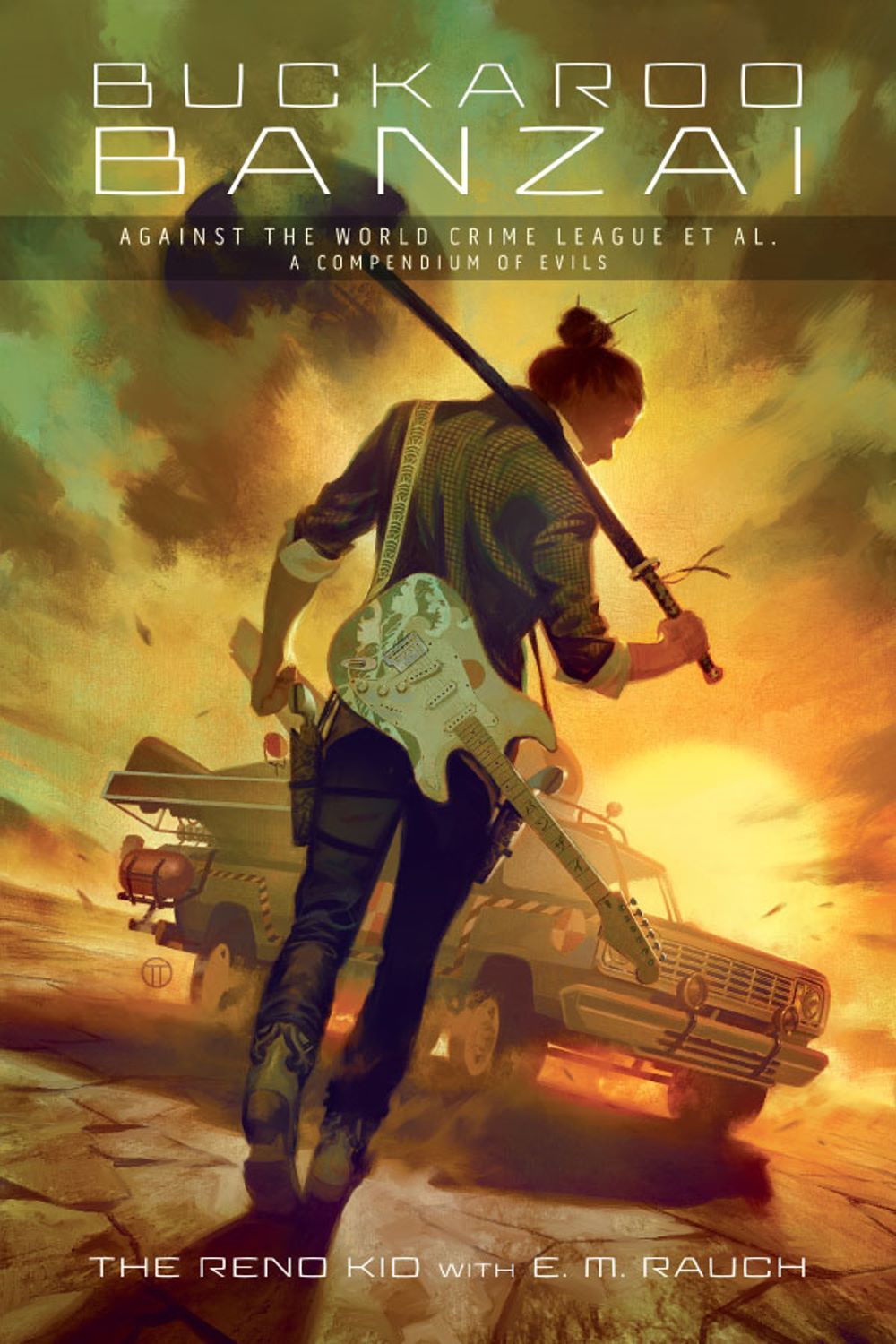 Media Release -- Attention all Blue Blaze Irregulars: It's time to ride again with everyone's favorite scientist-surgeon-entertainer-daredevil as he sets off on a new hair-raising adventure in Buckaroo Banzai Against the World Crime League, Et Al: A Compendium of Evils! As told by the Reno Kid to Buckaroo Banzai chronicler and original screenplay writer E.M. Rauch, this tale follows the Banzai Institute hero, confronting ancient "supernatural" evils in an adventure that spans entire planets and defies everyday notions of reality! First released in a hardcover edition in 2021, Dark Horse Books now offers the original prose novel in a value-priced paperback edition for those who prefer that format, featuring cover art by Julian Totino Tedesco.