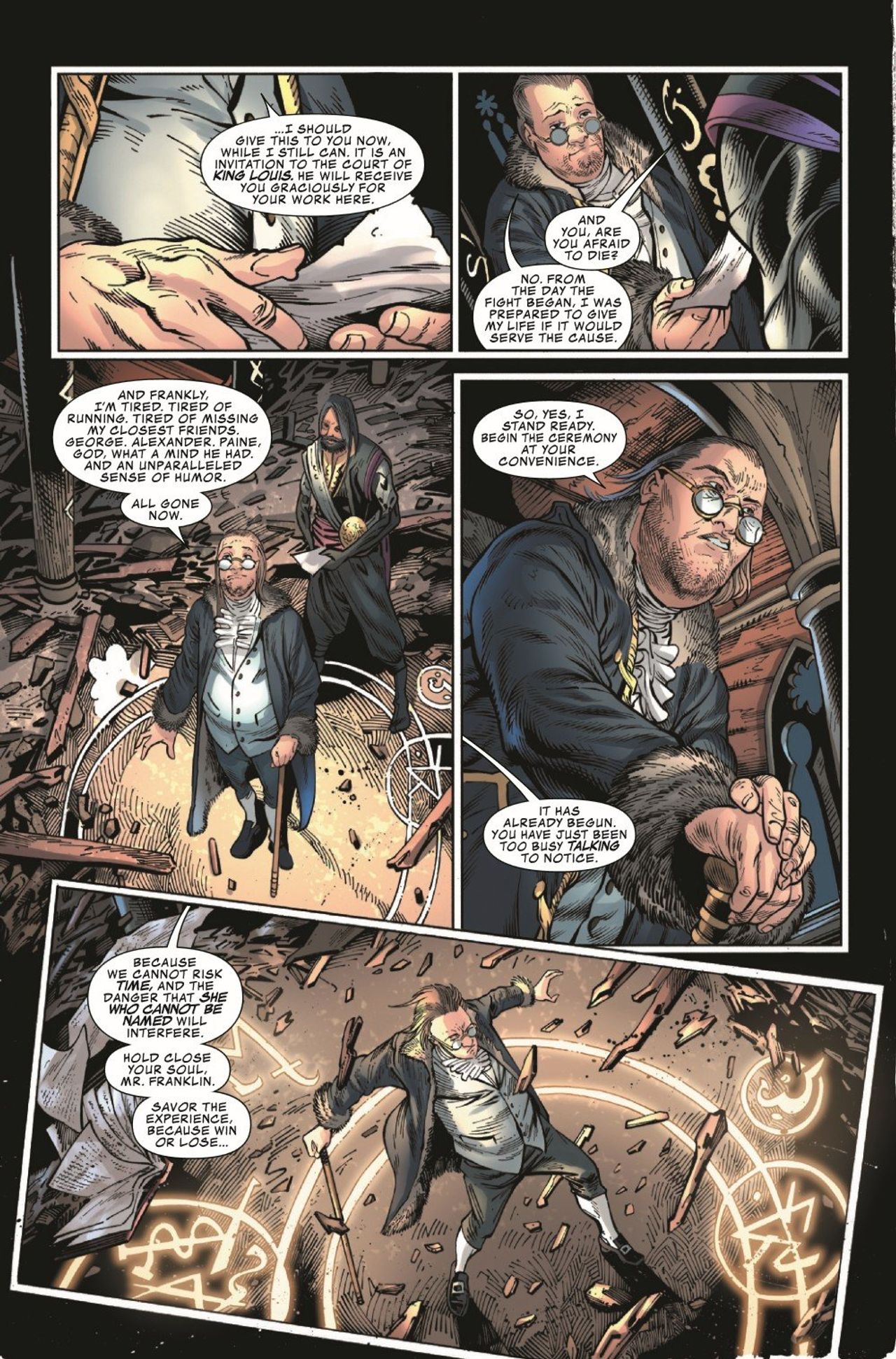 REVOLUTIONARY WARRIORS, ASSEMBLE! Calamity strikes when a mysterious force dares to tamper with the sacred threads of history. CAPTAIN AMERICA and his formidable squad of Marvel heroes leap into action! Their mission? To safeguard the founding of the United States of America! The fate of the nation hangs in the balance at the dawn of the Revolution, as these valiant heroes must navigate the treacherous waters of the past to ensure a future that remains untarnished.