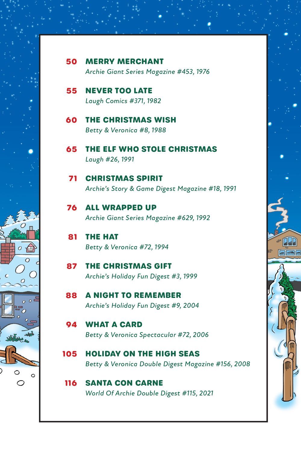 Have a holly, jolly Christmas in this title featuring some of Archie's most merry stories! It's the most wonderful time of the year once again! Archie and the gang are doing the last of their Christmas shopping and decking the halls in this special collection. Can Archie get his Christmas decorating done in time for the big day? Will Reggie get his name taken off Santa's Naughty List? Get ready for the gift of festively fun tales from Riverdale!