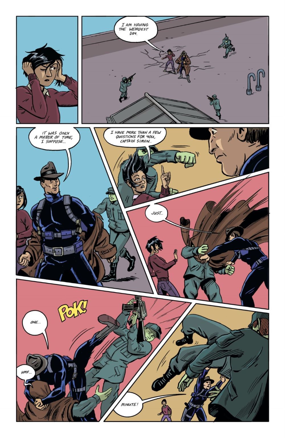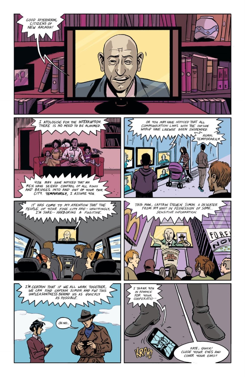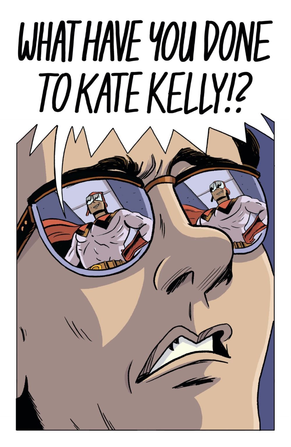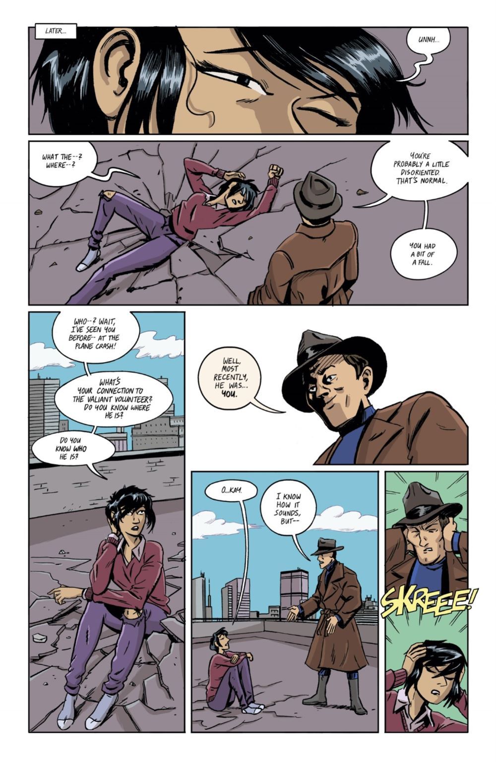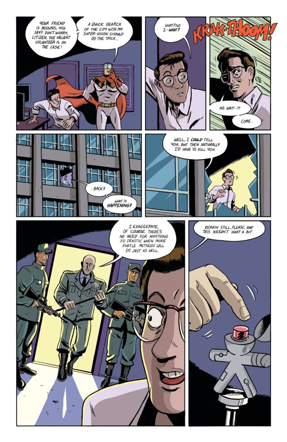 The revelations continue, as Kate gets to the bottom of the mystery around New Arcadia's resident superhero, The Valiant Volunteer. Who is he? Where does he come from? How does he manage to be right where he's needed, every single time? And what does the mysterious "General" have to do with it?! You simply won't believe your eyes!