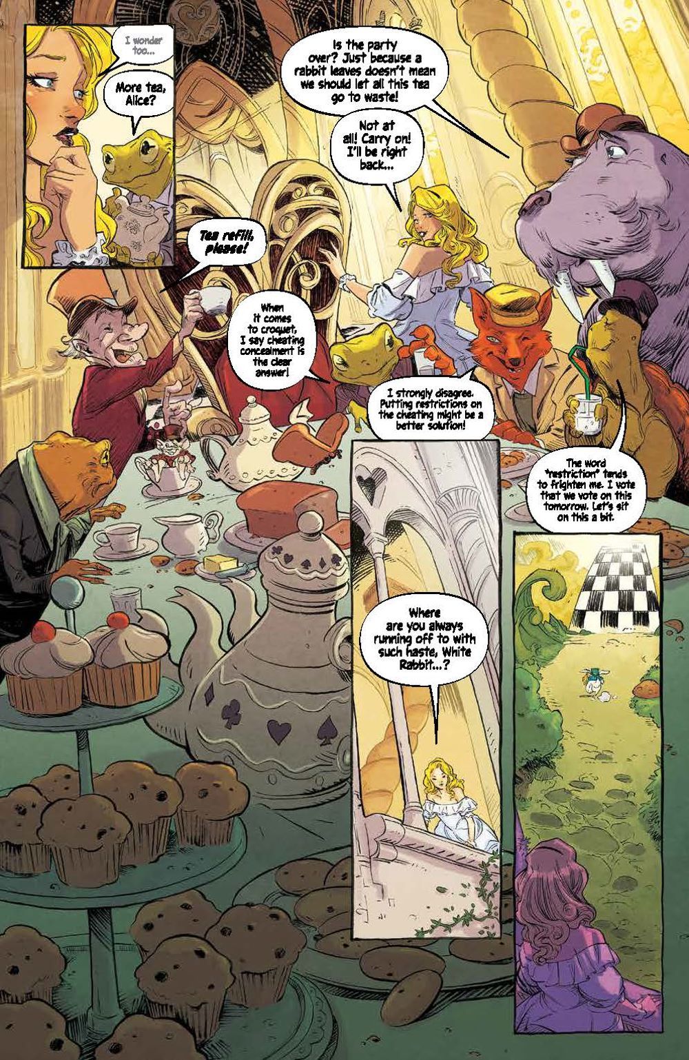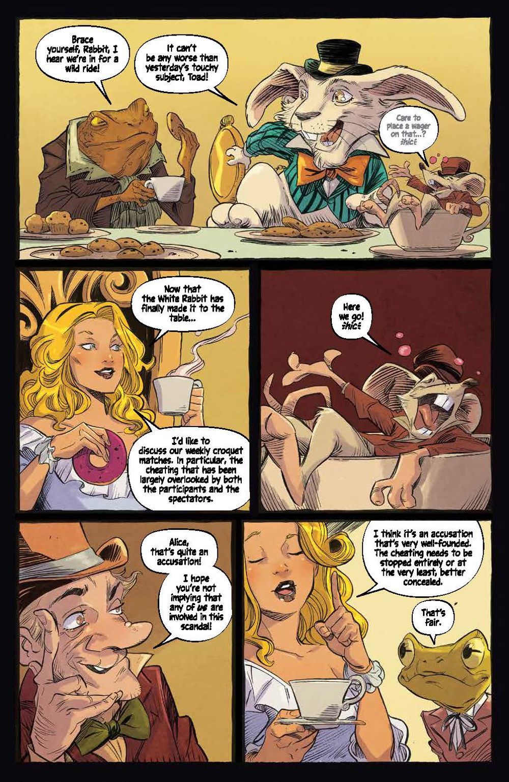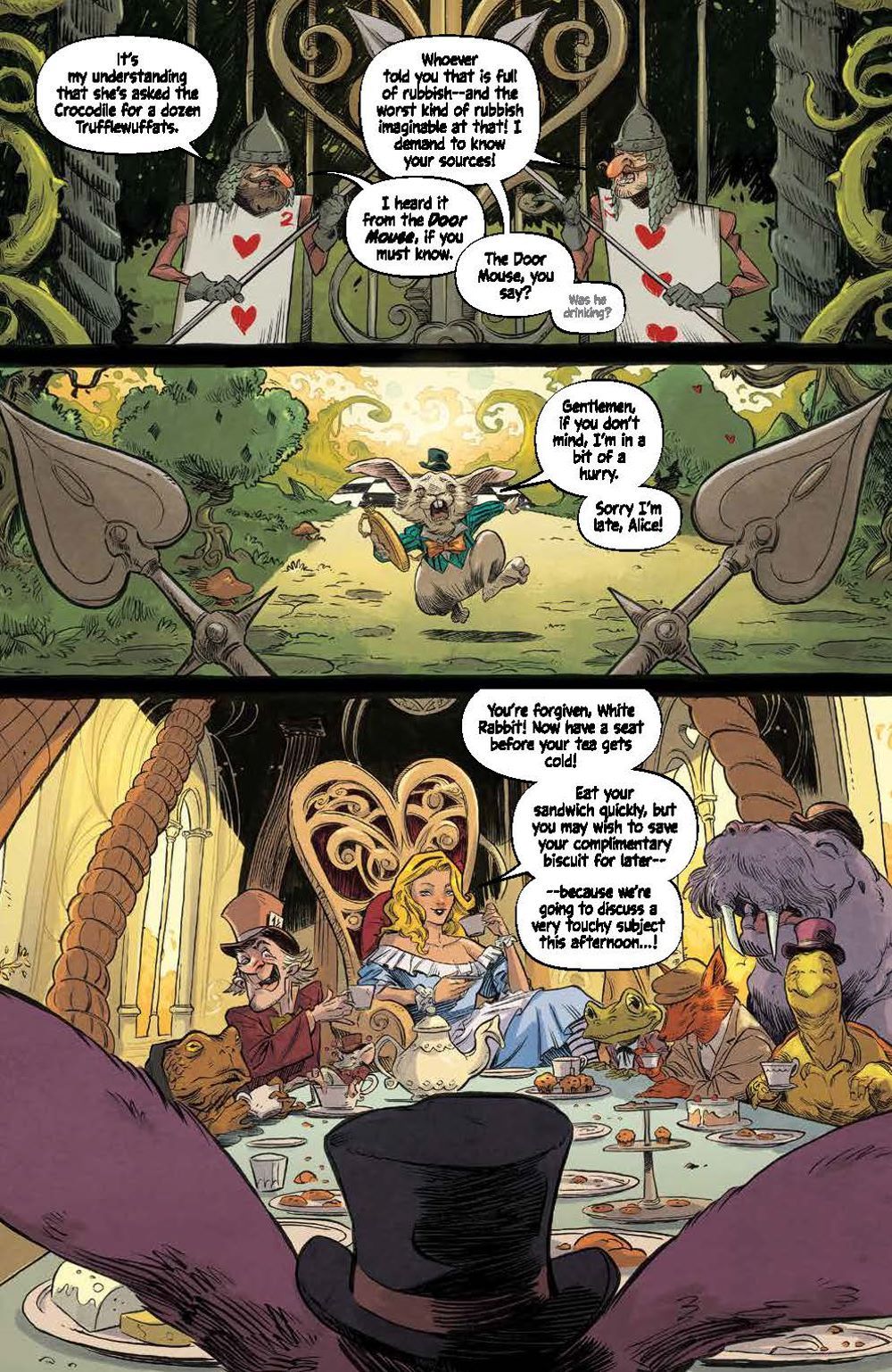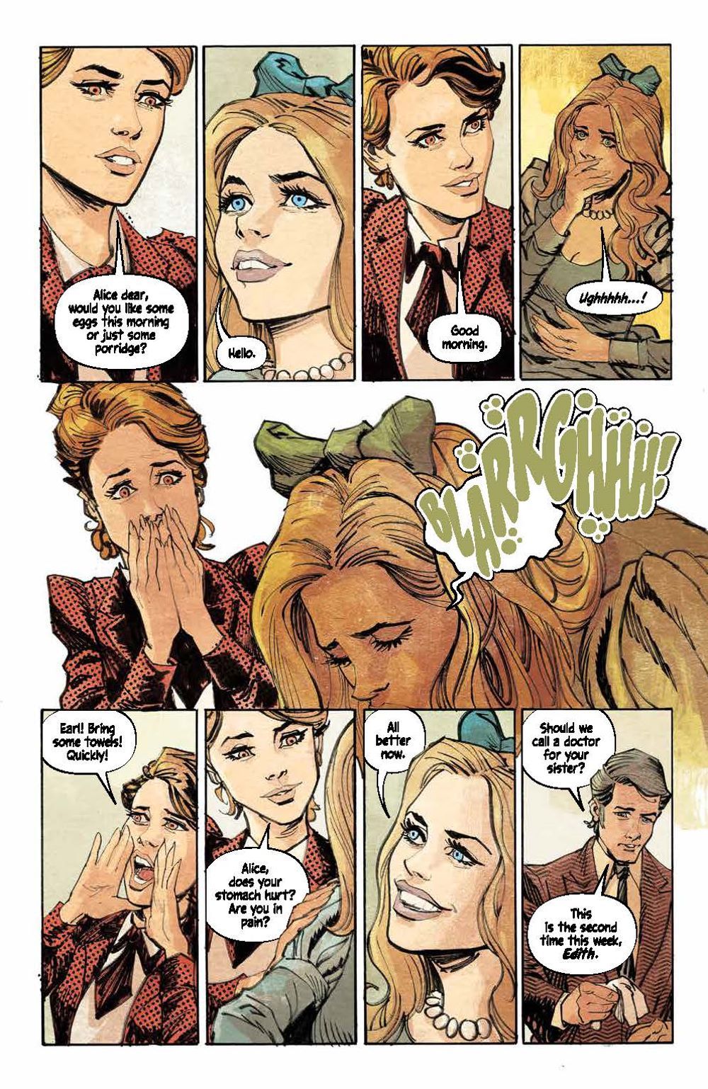 NEW SERIES. New Twists and Turns Into the Darkest Corners of Dan Panosian's Wonderland! Alice finally got her wish. Wonderland has become her new home, but with her abuser's avatar with the uncanny grin turning the mad residents of a moonstruck world against her, she's clawing for a little rationality amongst the chaos. As Alice's sister Edith and her childhood friend Earl fight for a way to bring her back, Alice has to contend with whether or not her torment is due to her father, herself, or maybe a curious combination of both… Superstar writer Dan Panosian (Unkindness of Ravens, Black Tape) and artist Giorgio Spalletta (007: For King & Country) explore the morbid side of escapism in this twisted tale that blurs the line between fantasy and reality.