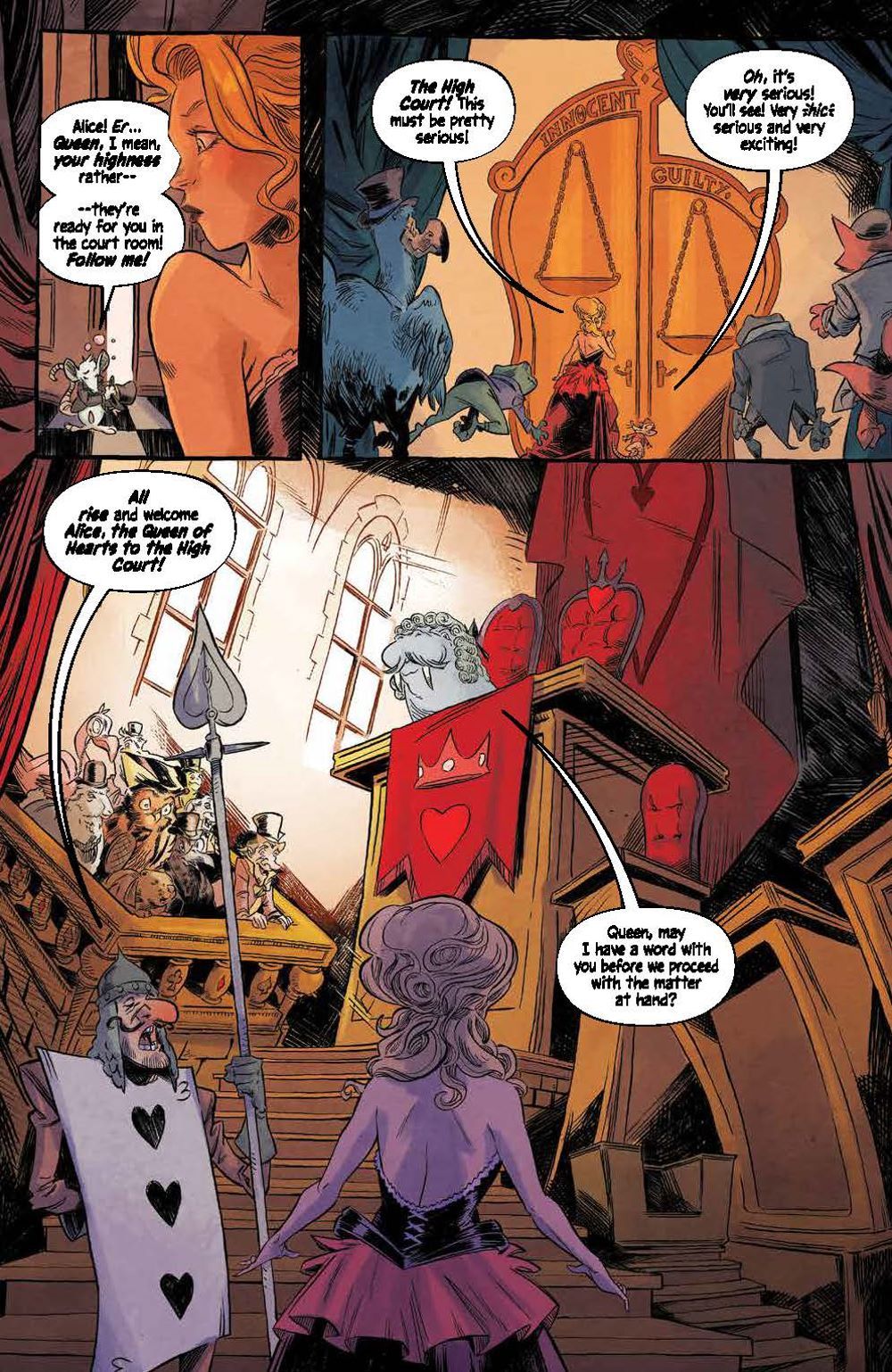 Alice's place in Wonderland becomes ever curiouser, as a newfound role changes everything for her and the unpredictable denizens of her escapism. But with power comes an ever-weakening trust between her and her most trusted advisors, especially when they congregate with her former tormentors?