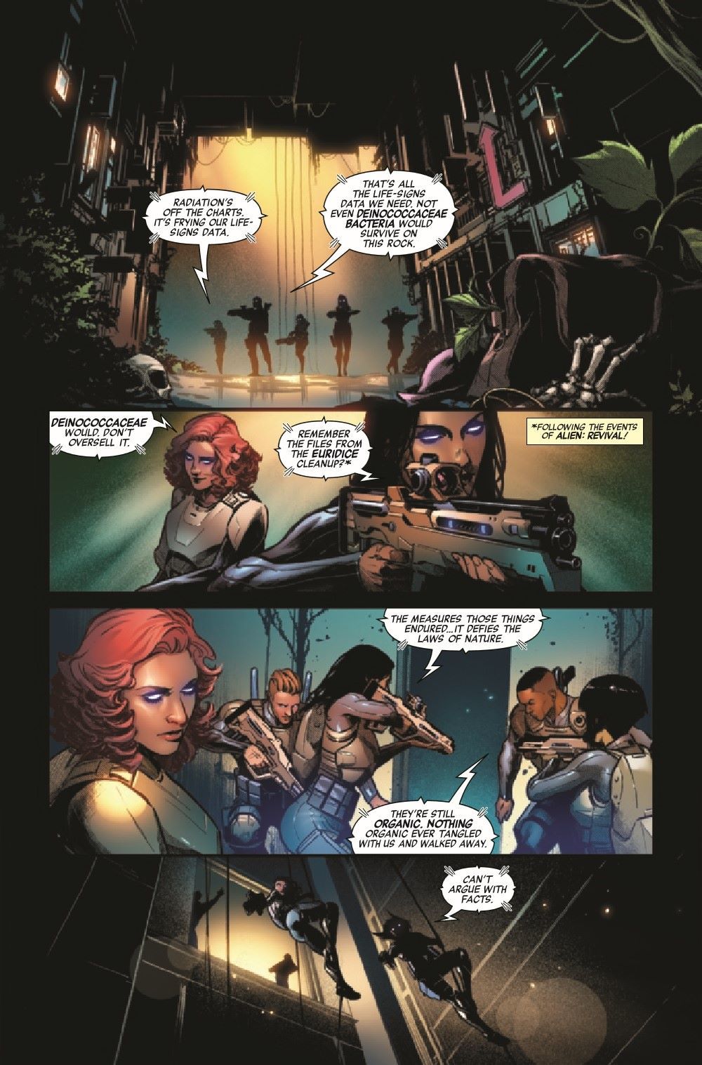NOTHING ORGANIC EVER TANGLED WITH US AND WALKED AWAY. "Steel Team," the legendary, unkillable Synthetic Special Operations team, has been reactivated. Sent to an abandoned Weyland-Yutani outpost to recover a project that now could save millions, Steal Team is the United Systems' only hope as they navigate the hellscape that the once-idyllic Tobler-9 has become. Since its mysterious downfall years earlier, Tobler-9 is considered one of the most hostile environments in the known universe, a place where nothing organic could possibly have survived…could it?