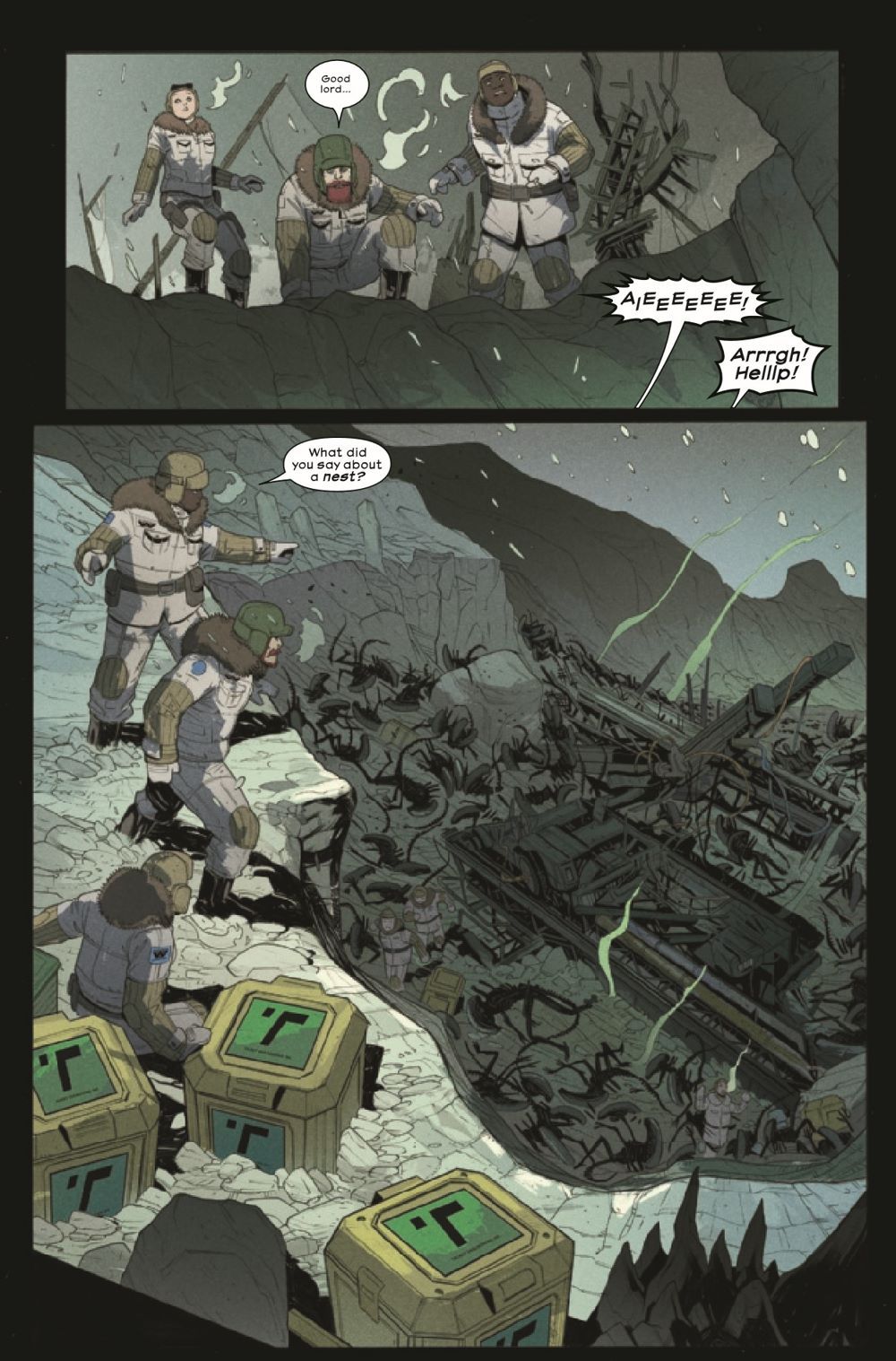 BETTER OFF BURIED! Talbot Engineering Inc. is under new management, but the organization's brilliant chief scientist, Batya Zhan, is not willing to give up her coded work to this unexpected threat without a fight. Over at Zhan's dig site, the intruders drill into the ice of the moon colony's surface only to discover hundreds of dark, black, frozen bodies. With daylight quickly dwindling away, it's anyone's guess what horrors will emerge in the black of night and from the cold of the ice.