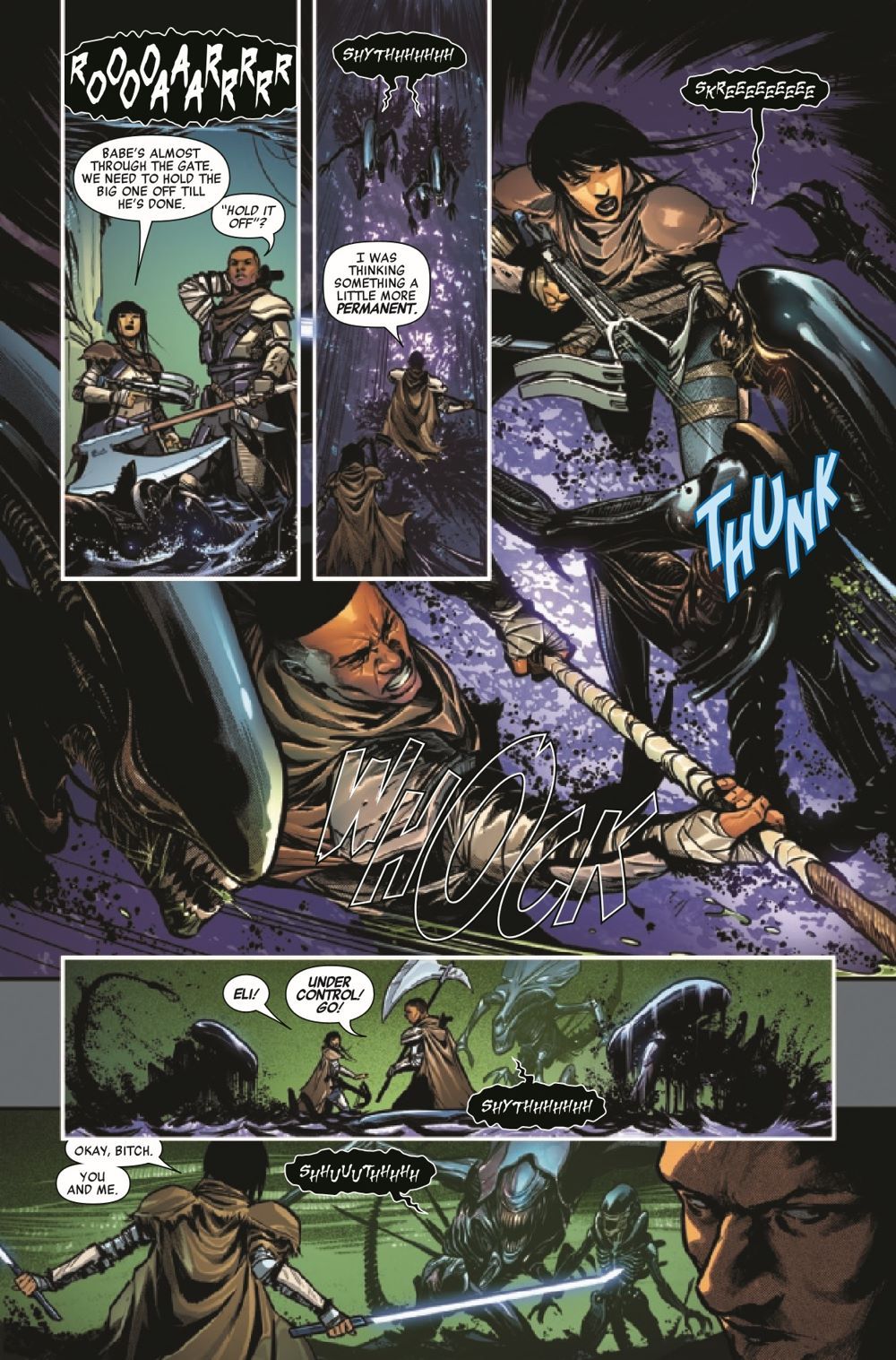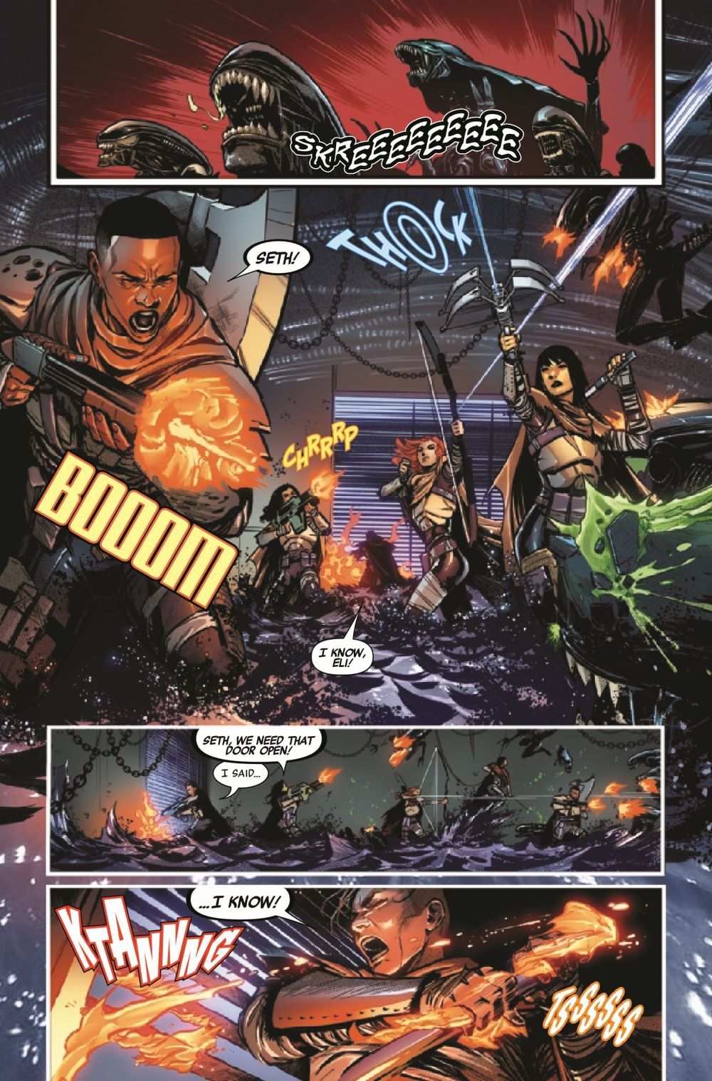 BETRAYAL IS THE HEART OF EVERY END! Steel Team's human allies have led them into an ambush, leaving them for dead in the nest of a vicious Xenomorph Queen. As Steel Team suffers their first casualties, Eli's trust in Freyja is tested like never before. Meanwhile, the humans suffer the consequences of their betrayal as a new kind of monster awakens inside one of their own.