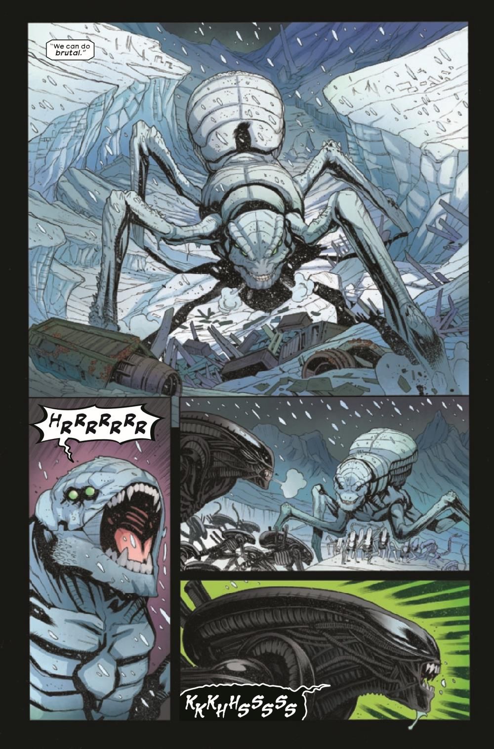 THE PERFECT ORGANISM MEETS ITS MATCH?! When Xenomorphs crash-landed on moon LV-695, they did what they do best: SLAUGHTER. And…transformed. The native kaiju of this icy rock thought themselves apex predators, but they were no match for Xenomorph fury. Now a hybrid creature has emerged…is this the evolutionary twist that ends Xenomorphs? And will any humans live to tell the tale? Jun Yutani springs his final trap!