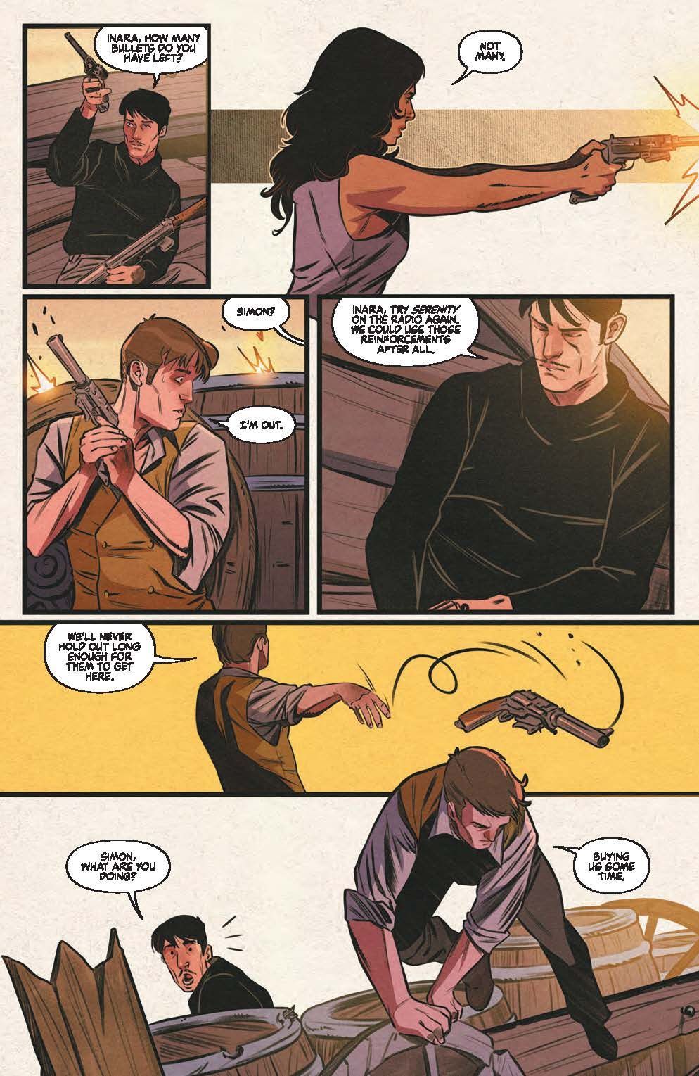 Will the help of newly-trained allies be enough for Inara, Simon and Leonard to survive the Tax Collector, and the shocking reveal of an even deadlier weapon? Meanwhile, new mysteries arise with the mercenaries out in space, and Owen takes action in ways the Serenity crew couldn't possibly predict…