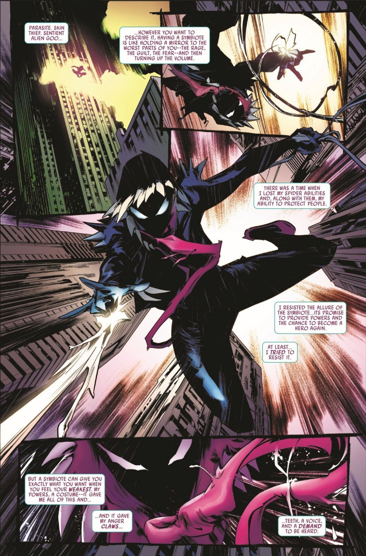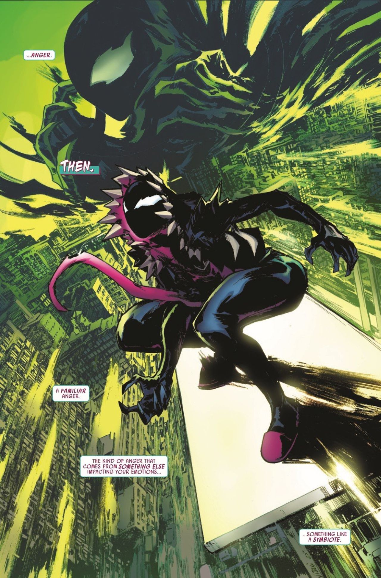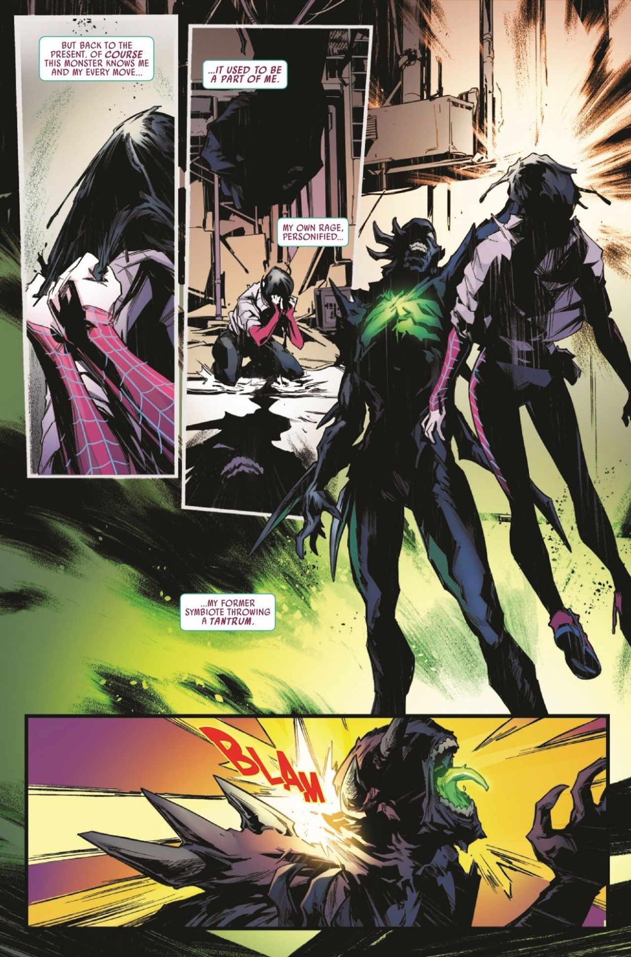 THIS TANTRUM IS GOING TO THROW YOU! The mysterious entity who's been hounding Gwen is revealed - meet TANTRUM, Gwen's former symbiote! It's out for revenge for being abandoned when Ghost-Spider got her powers back, jealous that it's not a part of Gwen's perfect new life!
