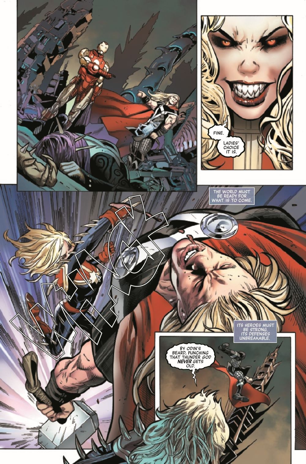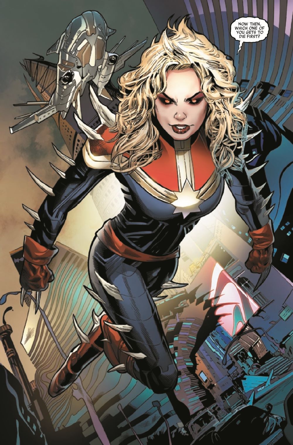 INTRODUCING: THE ALL-NEW AVENGERS SERIES THAT STARTS IN THE MIDDLE OF THE EXPLOSIVE ACTION AND RACES TO A SHOCKING CLIMAX! An alien attack. A missing piece of wormhole tech. A city warped, its citizens transformed into hideous creatures loyal to an Empress from the far side of the universe. And a certain Captain Marvel, looking to her fellow Avengers with murderous intent... Plunge into the action and take a deep breath because you will not be allowed up for air as a thrilling new series kicks off in the strongest, strangest way possible.