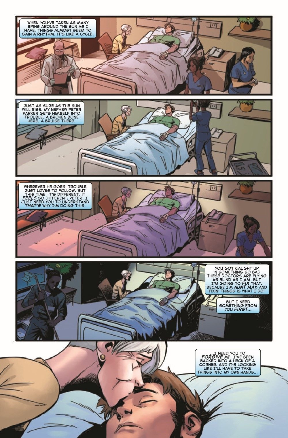 With her nephew at death's door, May Parker is not just going to sit around accepting that Peter's ailments aren't solvable with conventional means. Aunt May is going to seek UNCONVENTIONAL MEANS by way of her ex-fiancé DOCTOR OCTOPUS!!! One of the most controversial couples in comics history is back together, and they're Peter Parker's only hope of living through BEYOND!