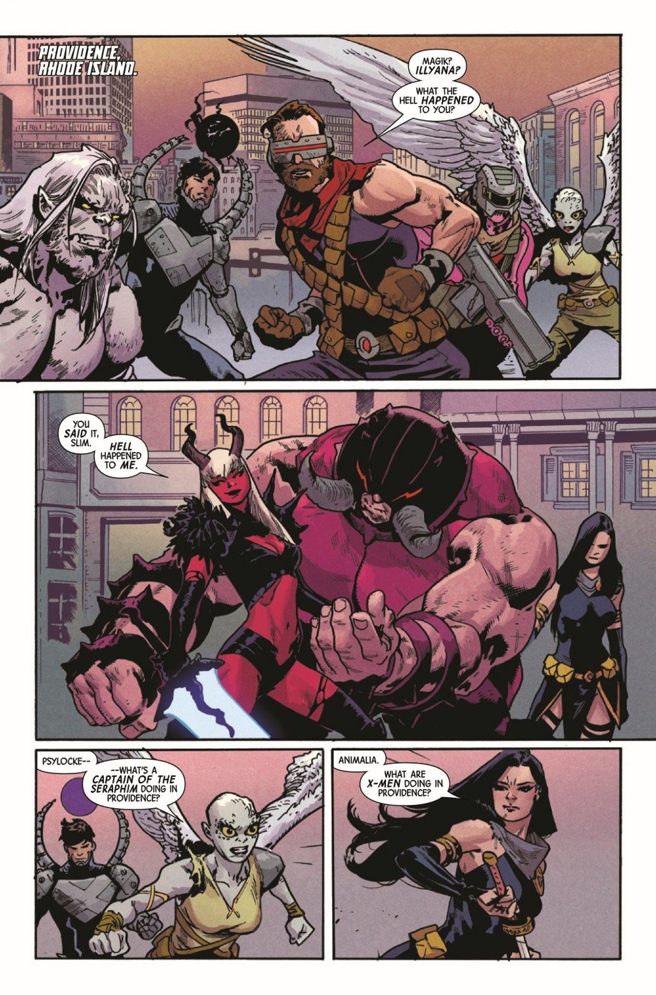 OUT OF THE FRYING PAN AND INTO THE HELLFIRE! X YEARS LATER, the X-Men find themselves at the mercy of the Darkchild and her demon knight, the Juggernaut! Can the X-Men escape Providence, or will they join the residents of that cursed city in damnation? A new ally joins them, but new truths coming to light threaten to tear them apart!