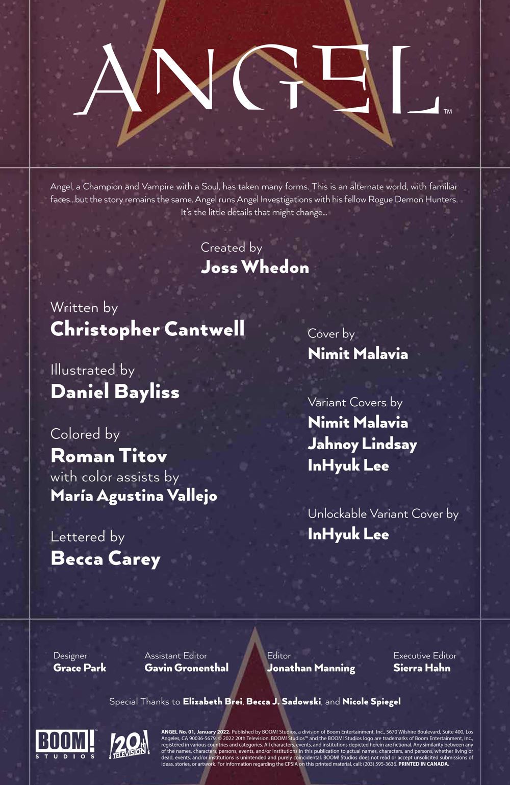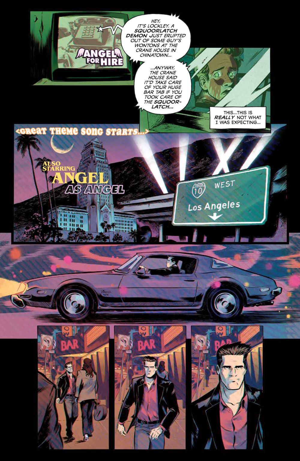 Everyone's Favorite Vampire With A Soul Returns in... ANGEL FOR HIRE?! Welcome to Angel for Hire, starring Angel and his co-star—Cordelia! But wait, Angel isn't just a celebrity? No, he leads a double life… as a real monster hunter for Angel Investigations! Sometimes this double life can get his friends in trouble. As Wesley is recovering from a horrific curse, Angel stumbles into a series of supernatural events, and finds himself sucked into an unexpected and mysterious world. He soon faces a terrifying enemy, who sees him as an intruder...