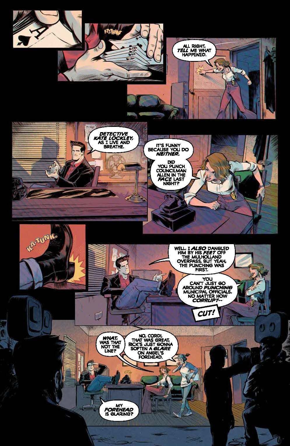 Angel is the star of his very own detective TV series, but that celebrity status hides a secret double life... as a real monster hunter for Angel Investigations! Balancing stardom with the fact that he's an actual vampire is no easy feat though, and when a mysterious figure from Sunnydale collides with his Hollywood lifestyle, Angel uncovers the greatest threat he's ever faced! Eisner Award-nominated writer Christopher Cantwell (Iron Man, Dr. Doom, AMC's Halt and Catch Fire) and Russ Manning Award nominated artist Daniel Bayliss (Jim Henson's Labyrinth: Coronation) bring Angel, Cordelia, and other fan favorite characters into a brand new corner of the Buffyverse, sending the iconic character on his wildest adventure yet. Collects Angel #1-4.