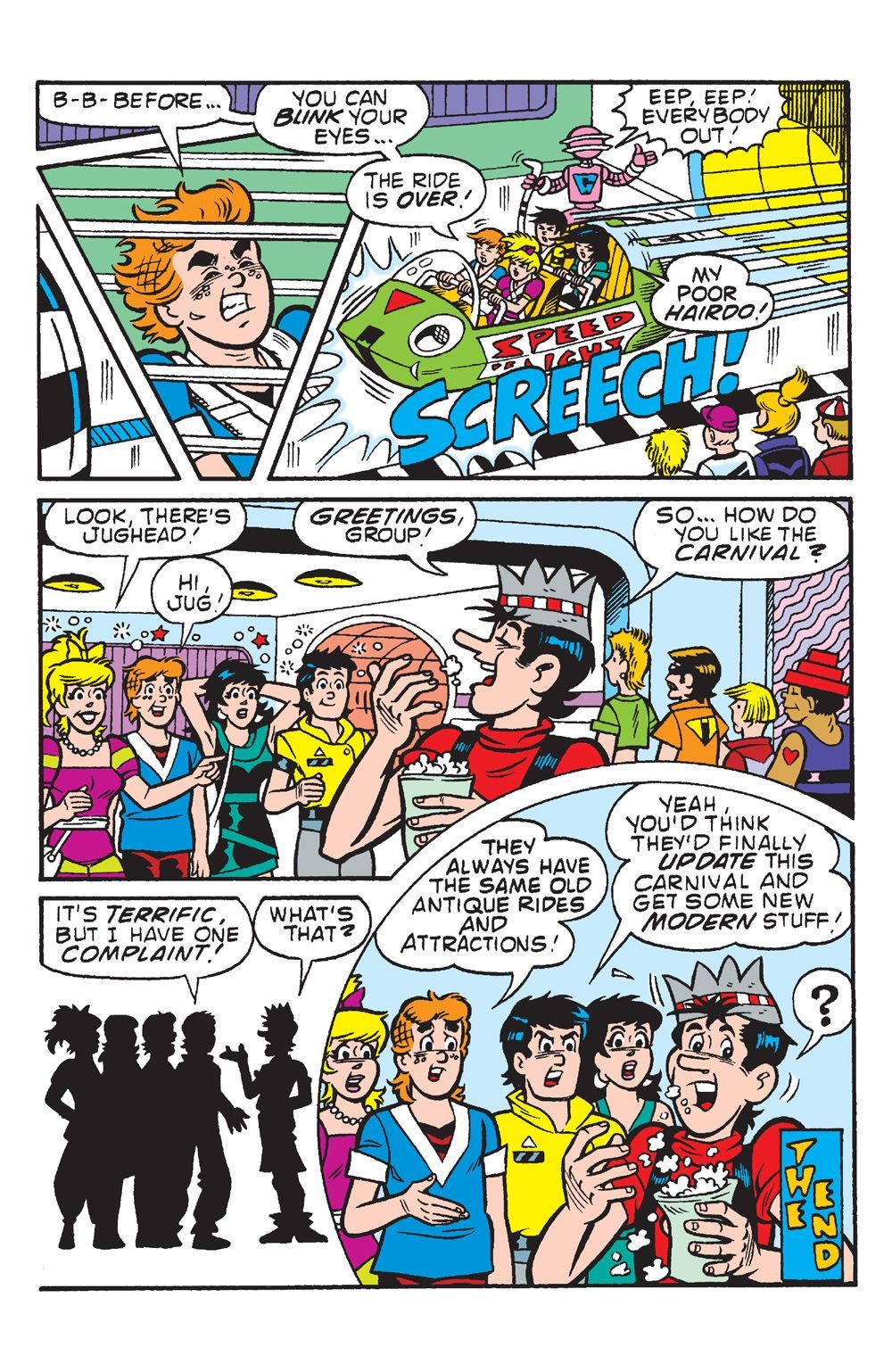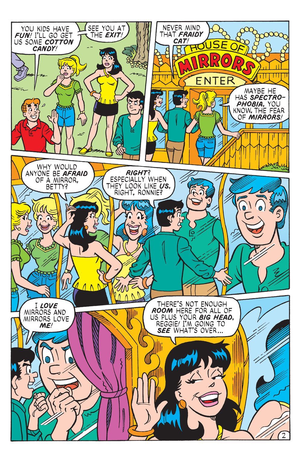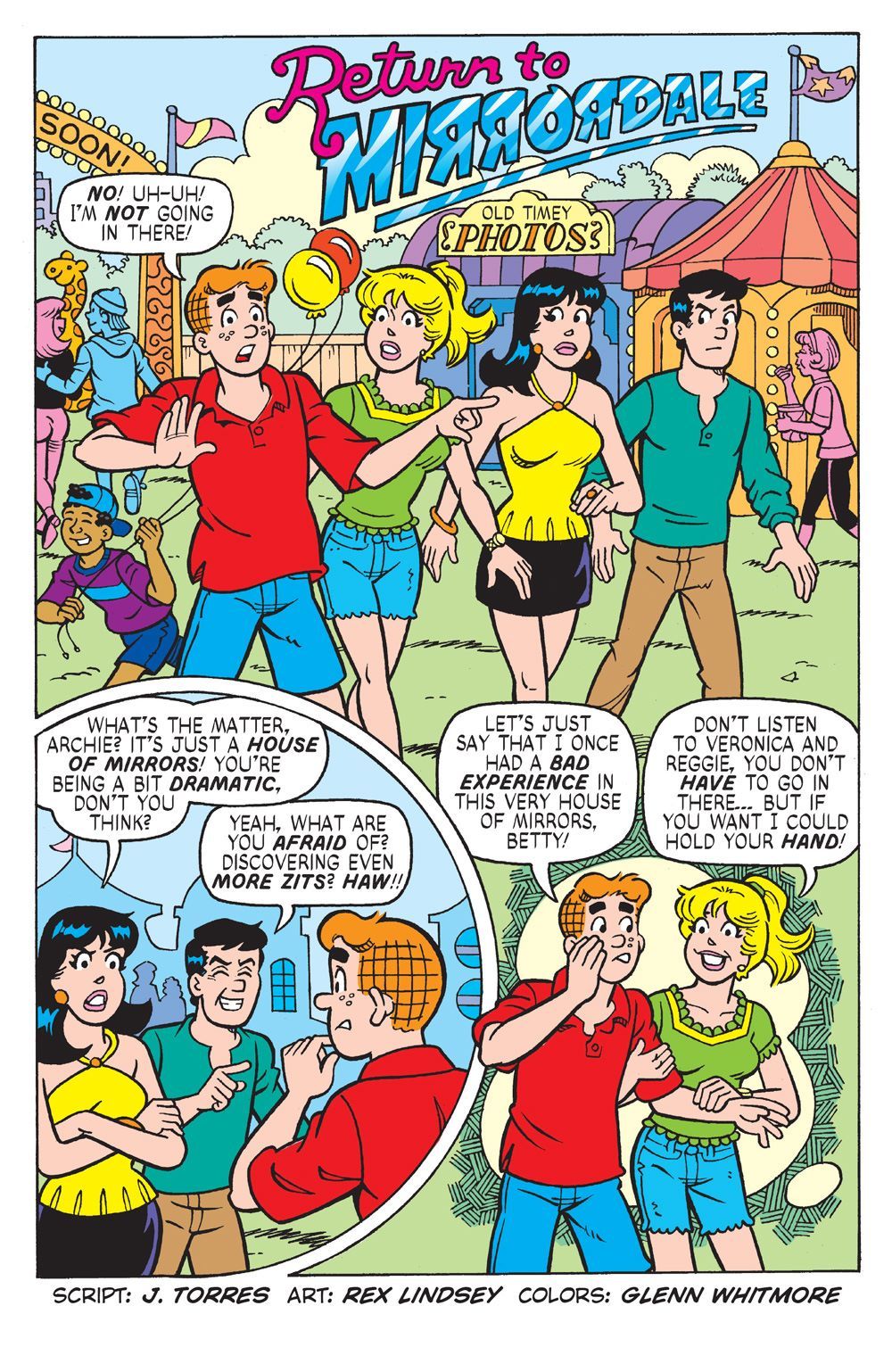A BRAND-NEW STORY kicks off this collection of thrill rides, exciting adventures, and odd occurrences! In "Return to Mirrordale," a house of mirrors on the Riverdale boardwalk piques everyone's interest. When no one listens to Archie's advice to avoid this familiar haunt, Betty, Veronica, and Reggie all go in to encounter obnoxious and opposite versions of themselves! Will they be able to escape as themselves, or will their bizarro mirror-world versions take over?