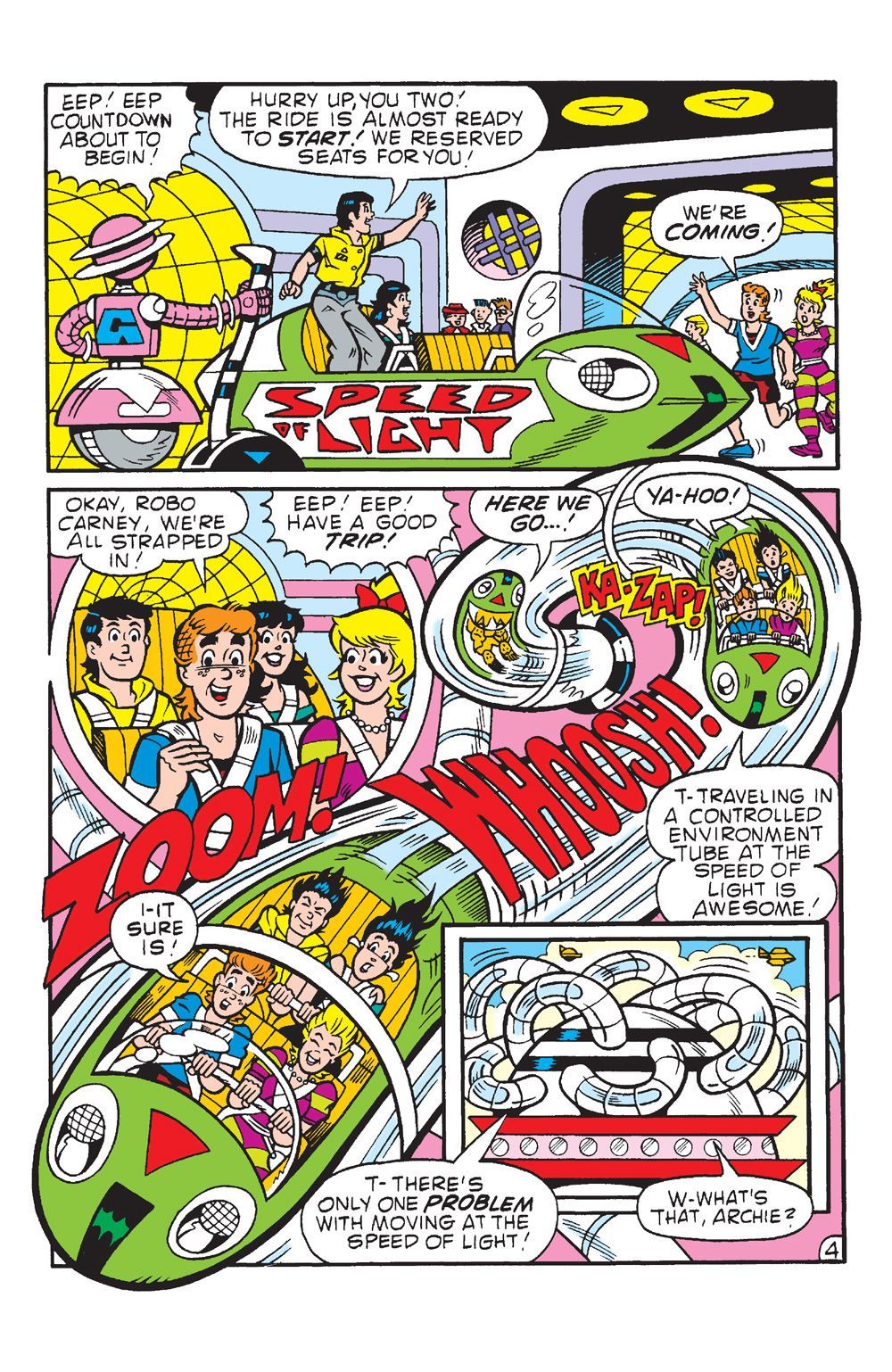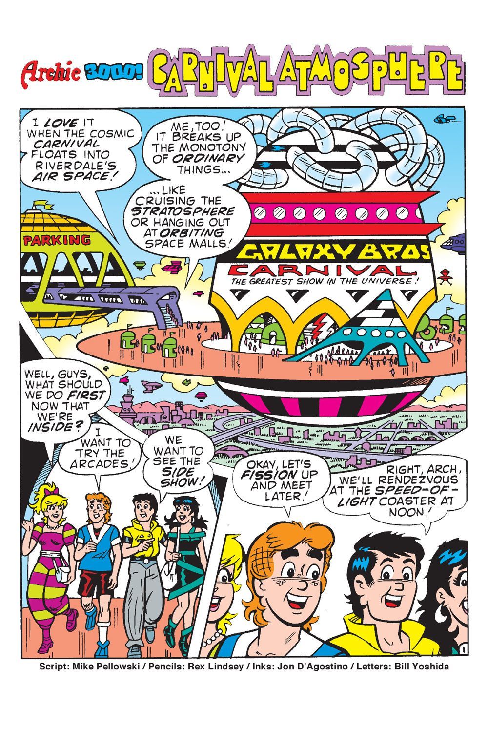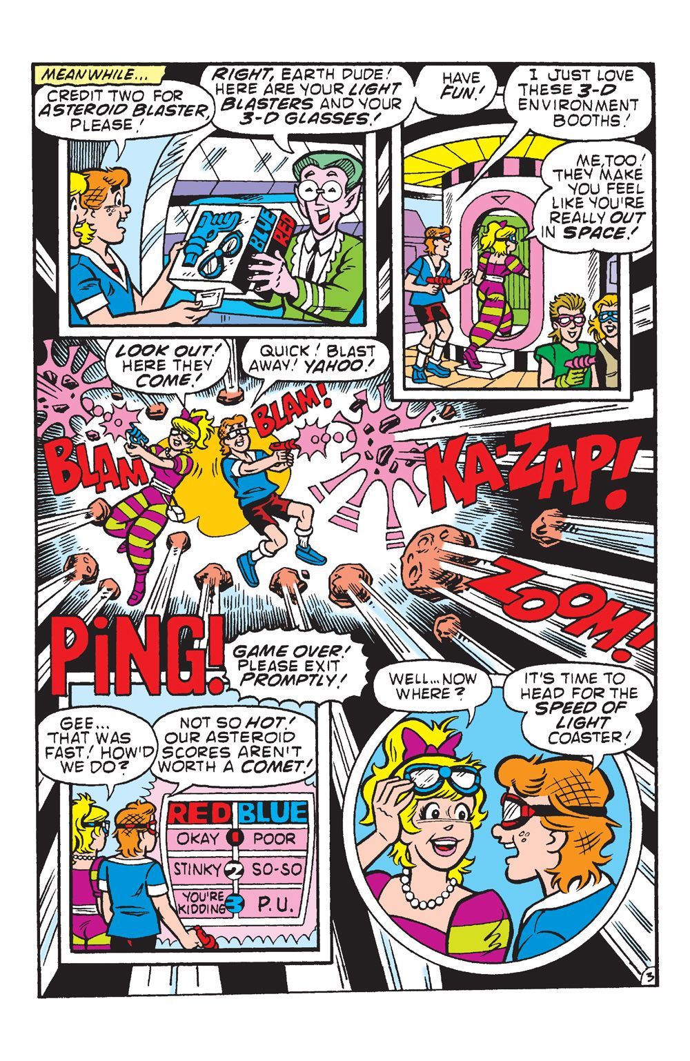 A BRAND-NEW STORY kicks off this collection of thrill rides, exciting adventures, and odd occurrences! In "Return to Mirrordale," a house of mirrors on the Riverdale boardwalk piques everyone's interest. When no one listens to Archie's advice to avoid this familiar haunt, Betty, Veronica, and Reggie all go in to encounter obnoxious and opposite versions of themselves! Will they be able to escape as themselves, or will their bizarro mirror-world versions take over?
