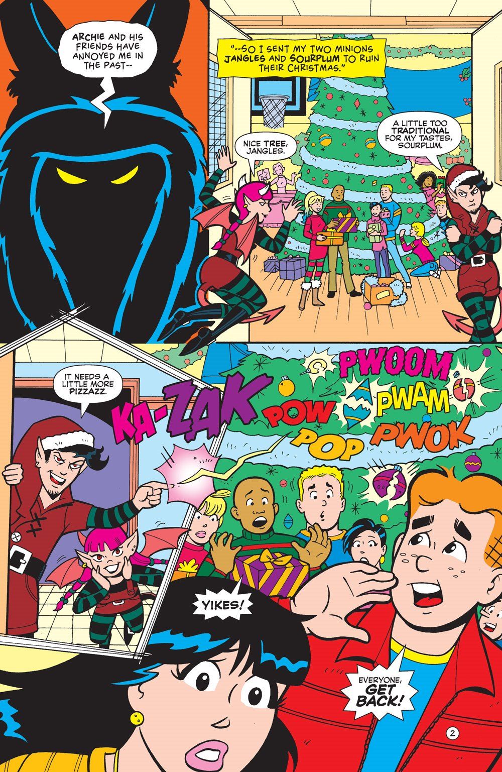 BRAND NEW STORY: "Christmas Chaos!" Christmas goes from nice to naughty for Archie and his friends when Jingles and Sugarplum are replaced by their bizzarro counterparts Jangles and Sourplum and a cranky ol' version of Santa called Grumpus! All that plus more holiday hijinks!