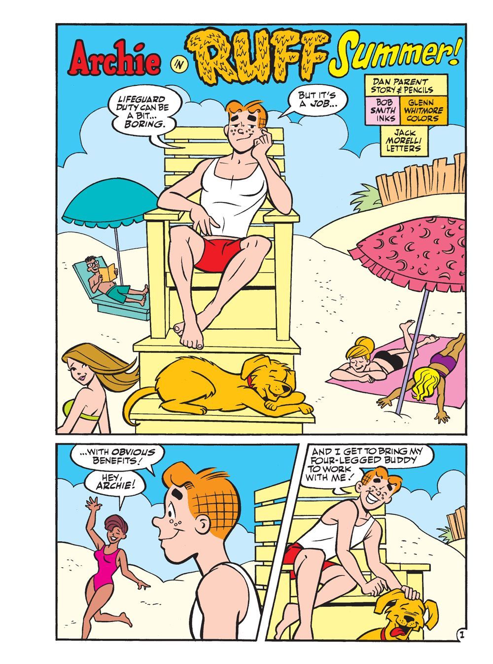 NEW CLASSIC-STYLE STORY: "Ruff Summer!" Archie's got a new job as a lifeguard at the beach… but it's Archie's dog Vegas who's having his moment in the sun when he helps save a swimmer! Vegas soon becomes the star of the beach—but will it last?