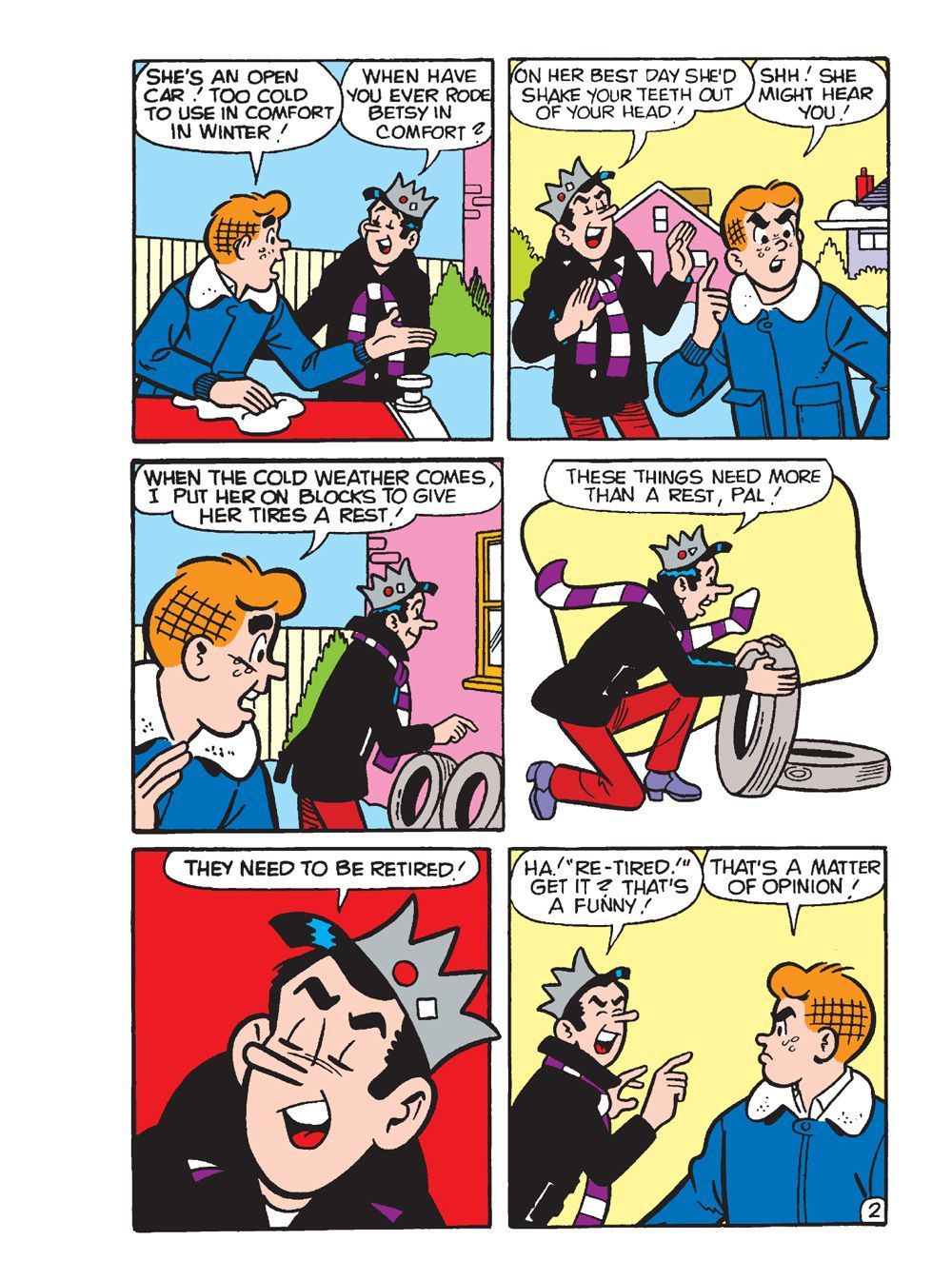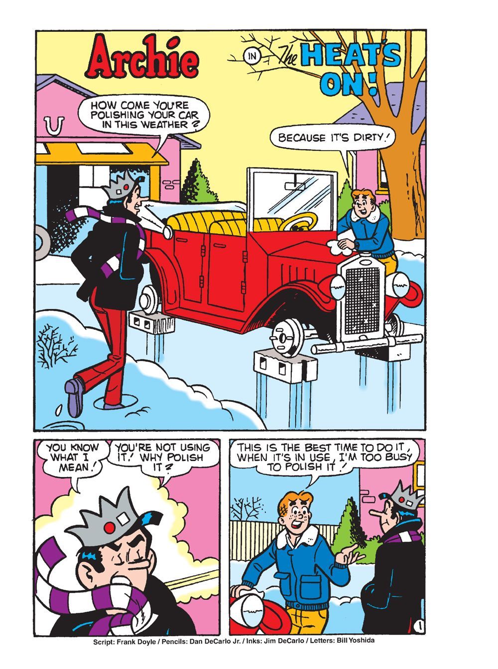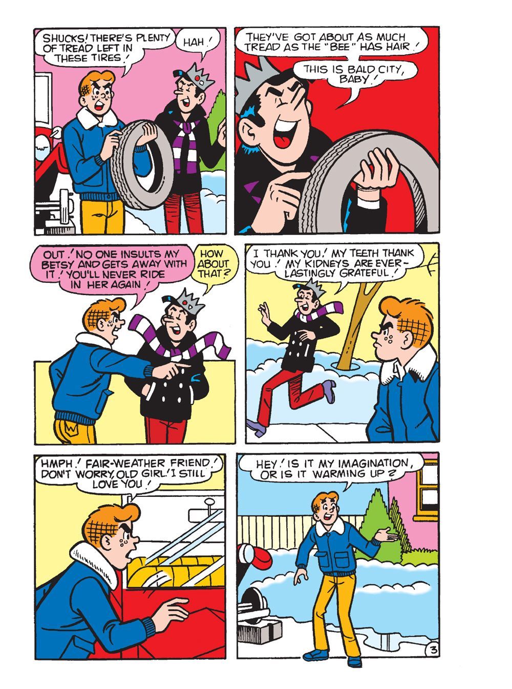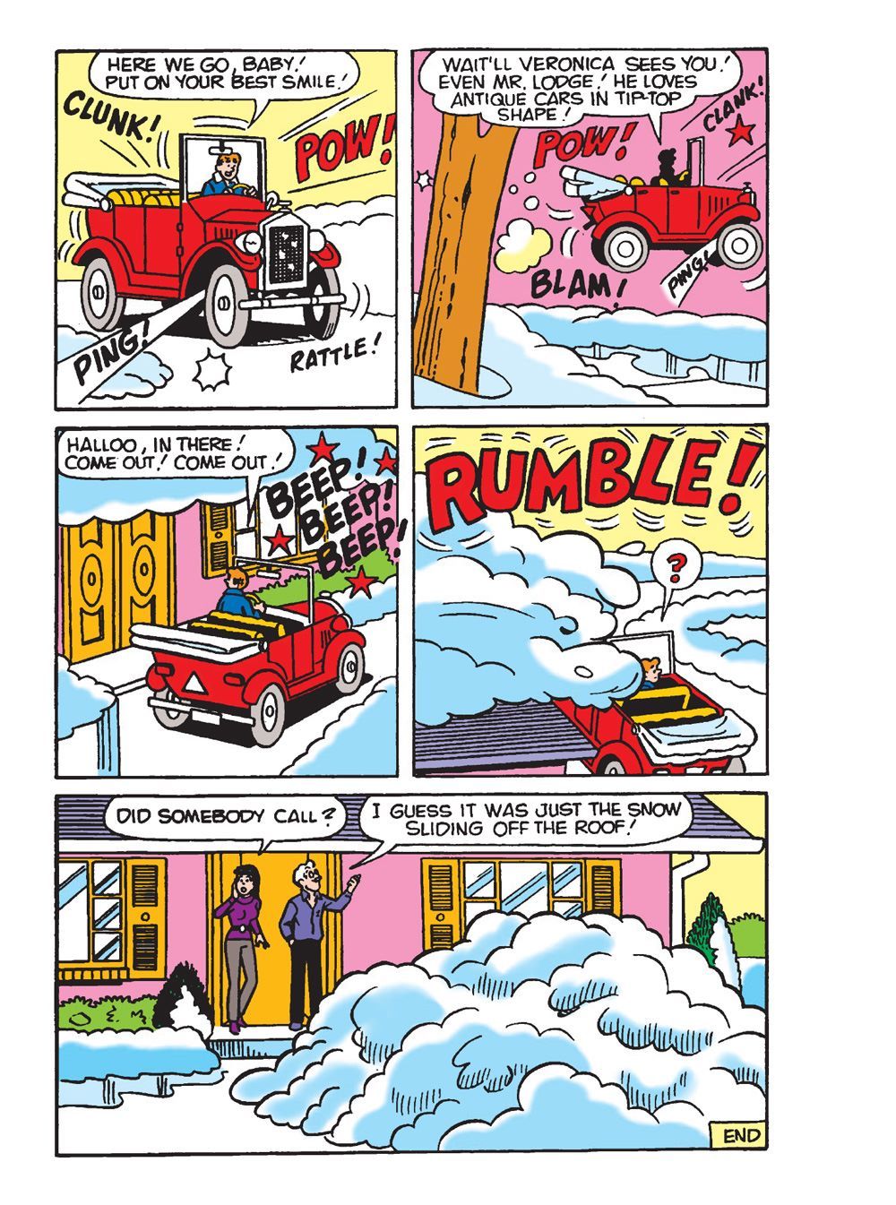 NEW CLASSIC-STYLE STORY: "SnoBoard Games" Archie, Betty, Veronica, Jughead, and Reggie are on a snowboarding trip in the mountains. While watching the Winter Olympics on TV in the lounge, Reggie brags that his snowboarding skills rival the professionals. Archie is skeptical, but when Reggie impresses the girls with flips and other tricks on the slope, Archie becomes jealous. Does Archie have what it takes to outdo Reggie on the "Monster Slope," the scariest, most dangerous slope on the mountain? Or will it be a total wipeout?