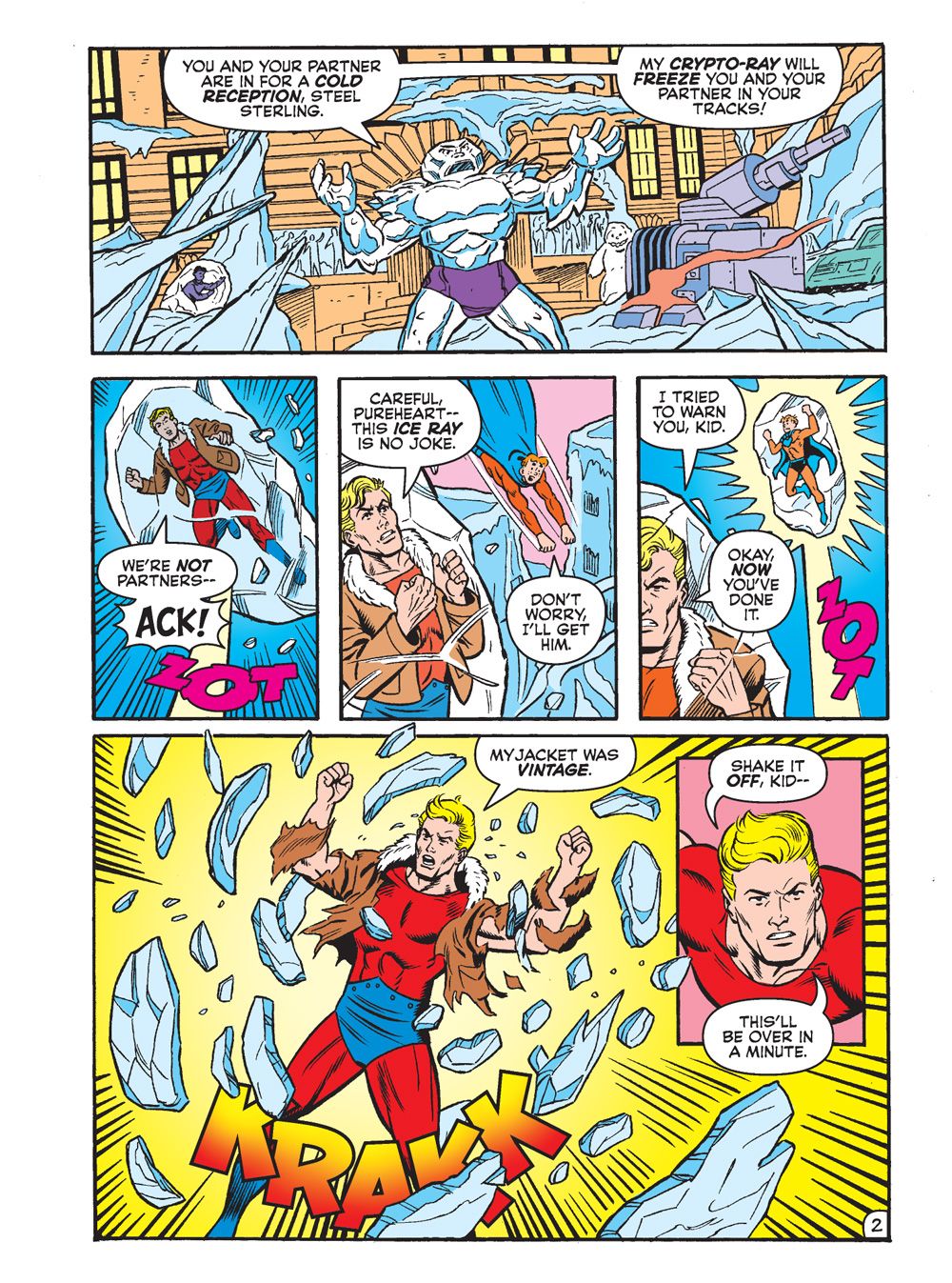 Then, we have "Breaking the Ice", a brand-new Steel Sterling story that sees the hero taking on one of the most difficult tasks he's had to yet—mentoring a new, young hero. Namely, Pureheart the Powerful! Can Pureheart prove to Sterling that he's more than just sidekick material, and has what it takes to be a full-fledged superhero all his own?