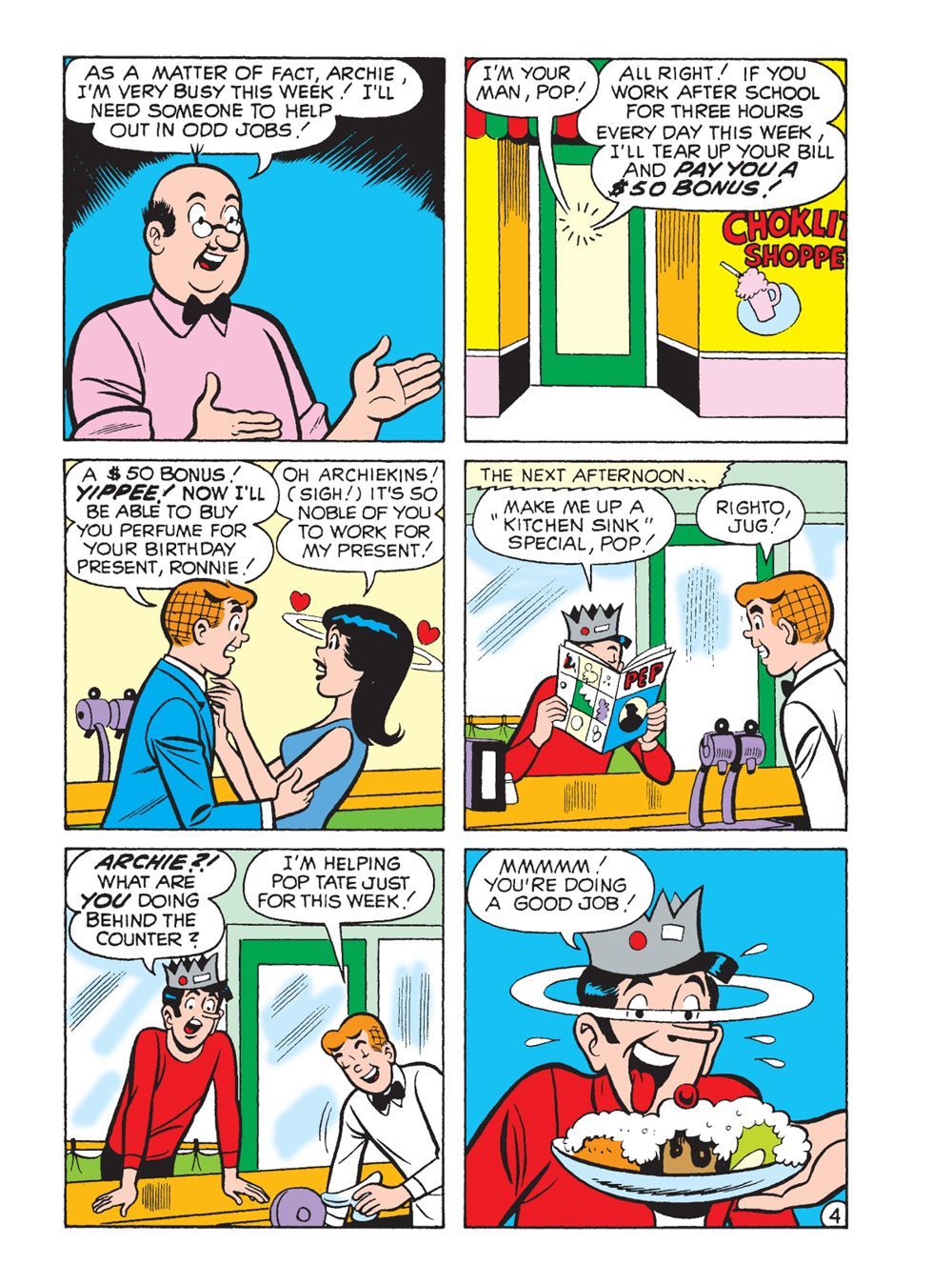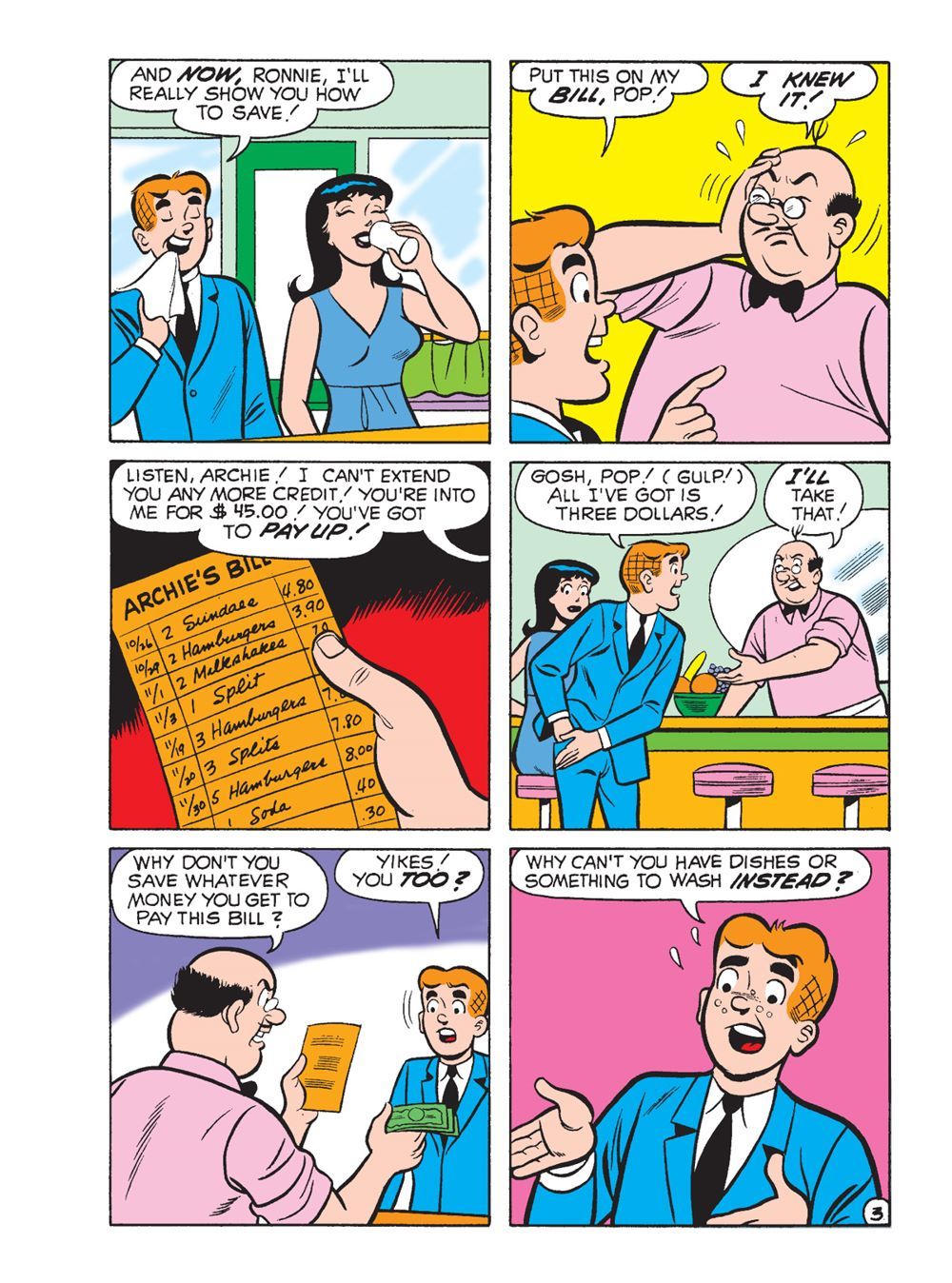 TWO BRAND NEW STORIES! First, "3 Goes Into Three..." three is the magic number in this special 333rd issue! And you know what has three sides? A triangle! And triangles are important to Riverdale-well, at least one is: Archie, Betty, and Veronica's love triangle! But triangles aren't the only special shapes in Riverdale, see what other geometrical figures pop up in this fun story!