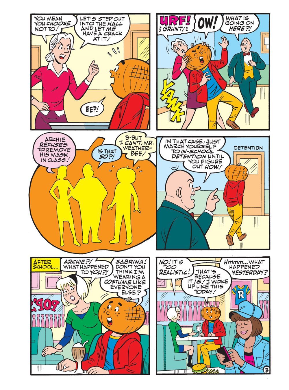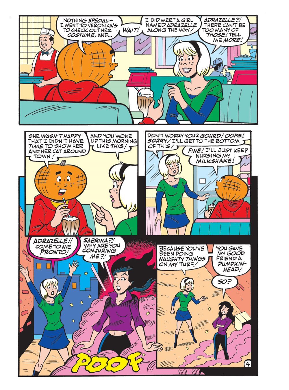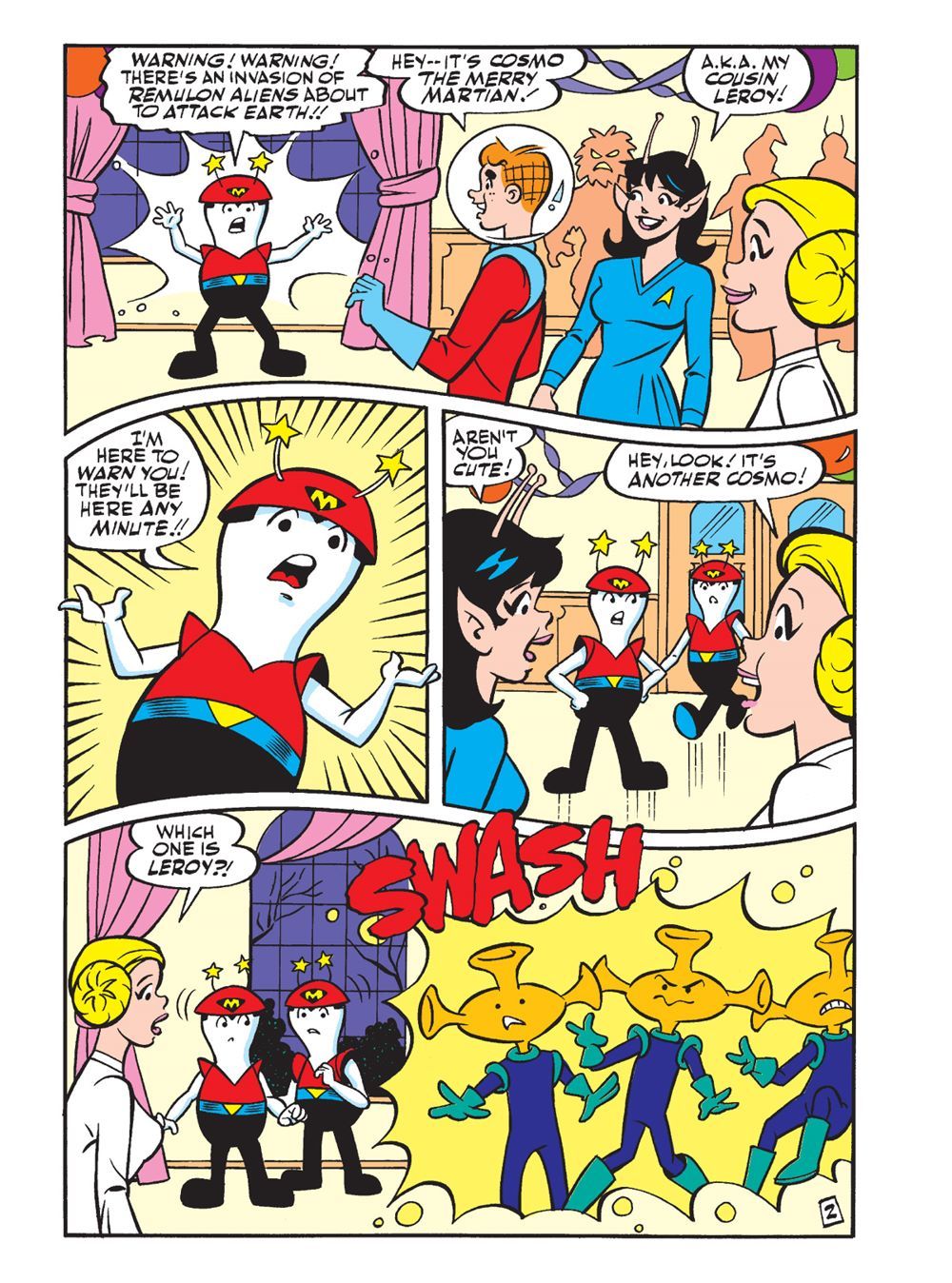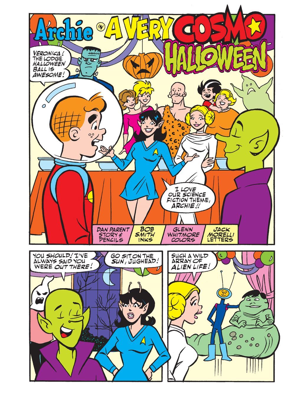 TWO BRAND NEW STORIES! First in "A Very Cosmo Halloween!" Cosmo the Merry Martian—or someone who looks an awful lot like Cosmo—crashes the Lodge Halloween Ball. Fortunately, this year it's science fiction-themed! Cosmo tries to warn the teens of an impending invasion—but will they be able to tell them apart from the costumed aliens at the party?