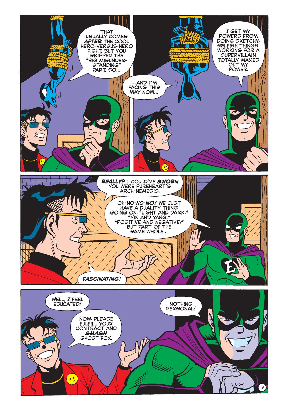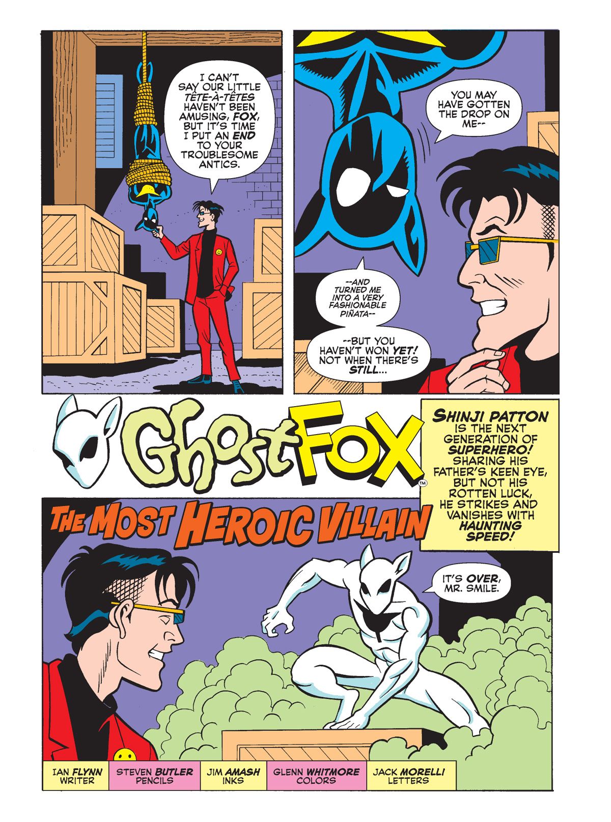 Next, in "The Most Heroic Villain," The Fox is at the mercy of Mr. Smile, when his son Ghost Fox comes to save the day! Except Mr. Smile has a secret weapon—Evil Heart! Watch the two teen masked crusaders go head-to-head to see whose powers reign supreme!