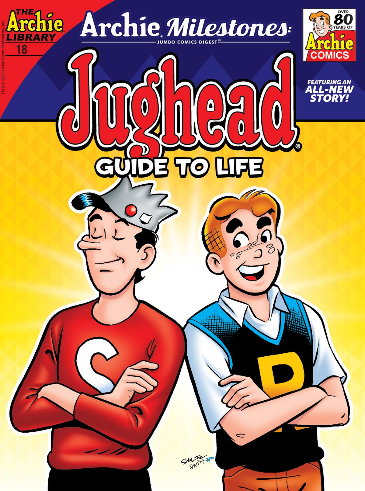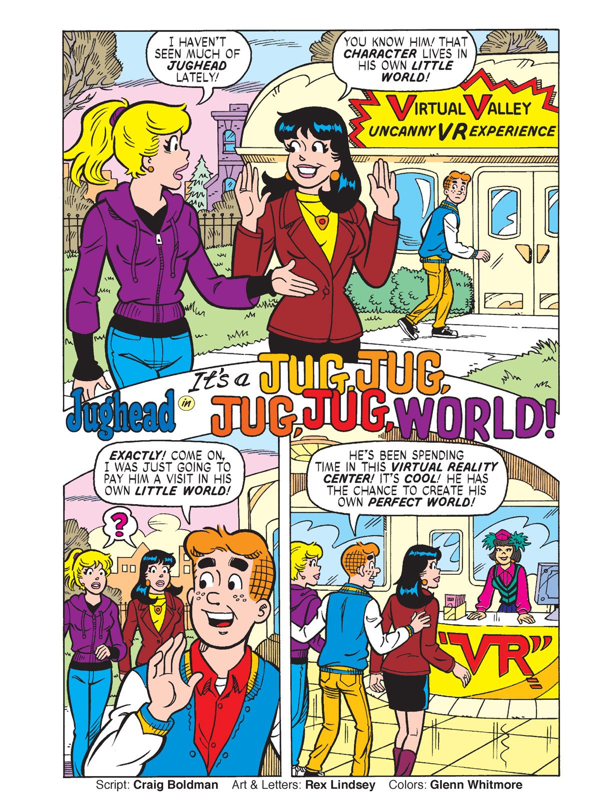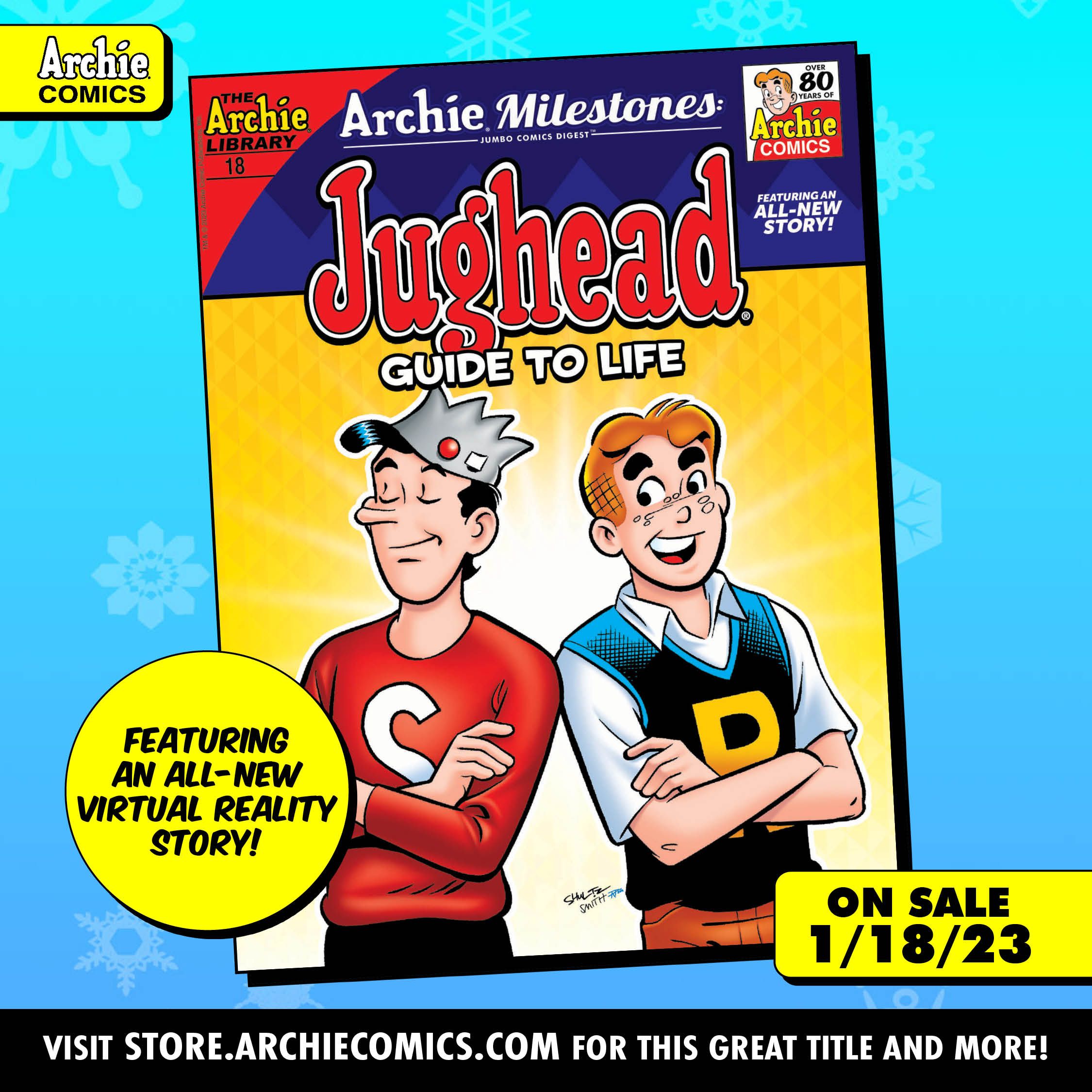 Archie Milestones returns with a brand-new spotlight on everyone's favorite burger-loving BFF: Jughead Jones! In the BRAND-NEW STORY "It's A Jug, Jug, Jug, Jug World!" Archie and the gang haven't seen much of Jughead lately. As it turns out, he's been spending time in a VR facility which allows him to create his own virtual reality landscape. The others are able to plug themselves into this world that Jughead has created so they decide to sample it. What will they encounter on their virtual tour of Jughead's ideal world? From time travel to life lessons and everything in-between, this digest highlights the best and brightest Jughead moments and stories—with plenty of snacks along the way!
