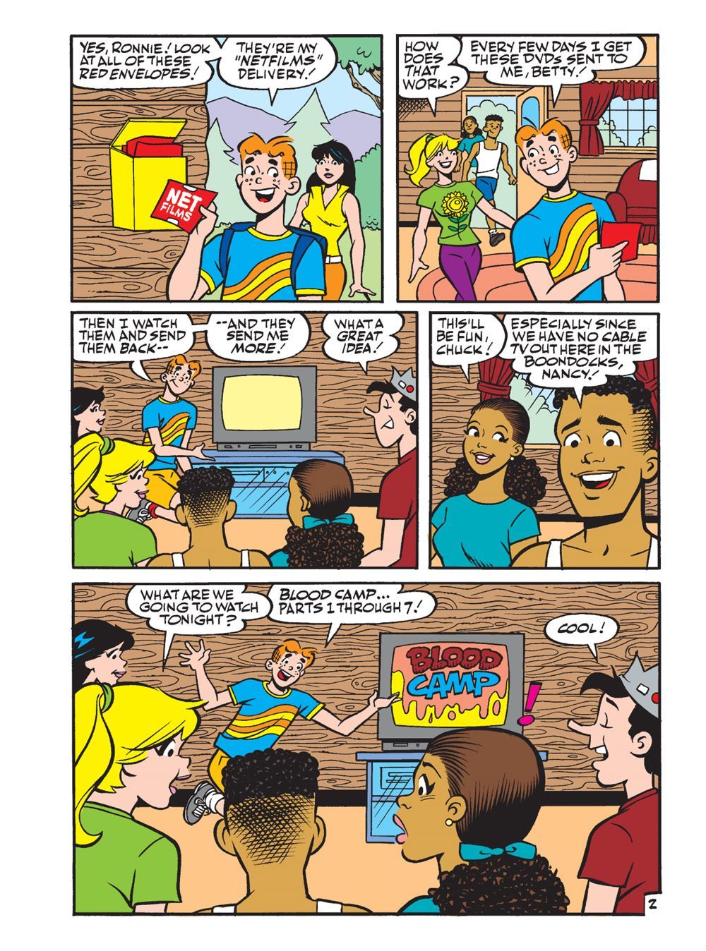 We travel back to the start of the Millennium with this digest spotlighting the best of the 2000s, beginning with a BRAND NEW STORY! In "Movie Melee," Archie and the gang are spending the summer at his family's rental lake house. They're having a grand old time having fun in the sun, camping, and watching movies in the cabin at night, where Archie discovers the newest technology: "NETFILMS" a service where DVDs are delivered to him several times a week! But when Archie keeps receiving mail from them once the summer ends, he's starting to wonder if something's glitchy about this new service!