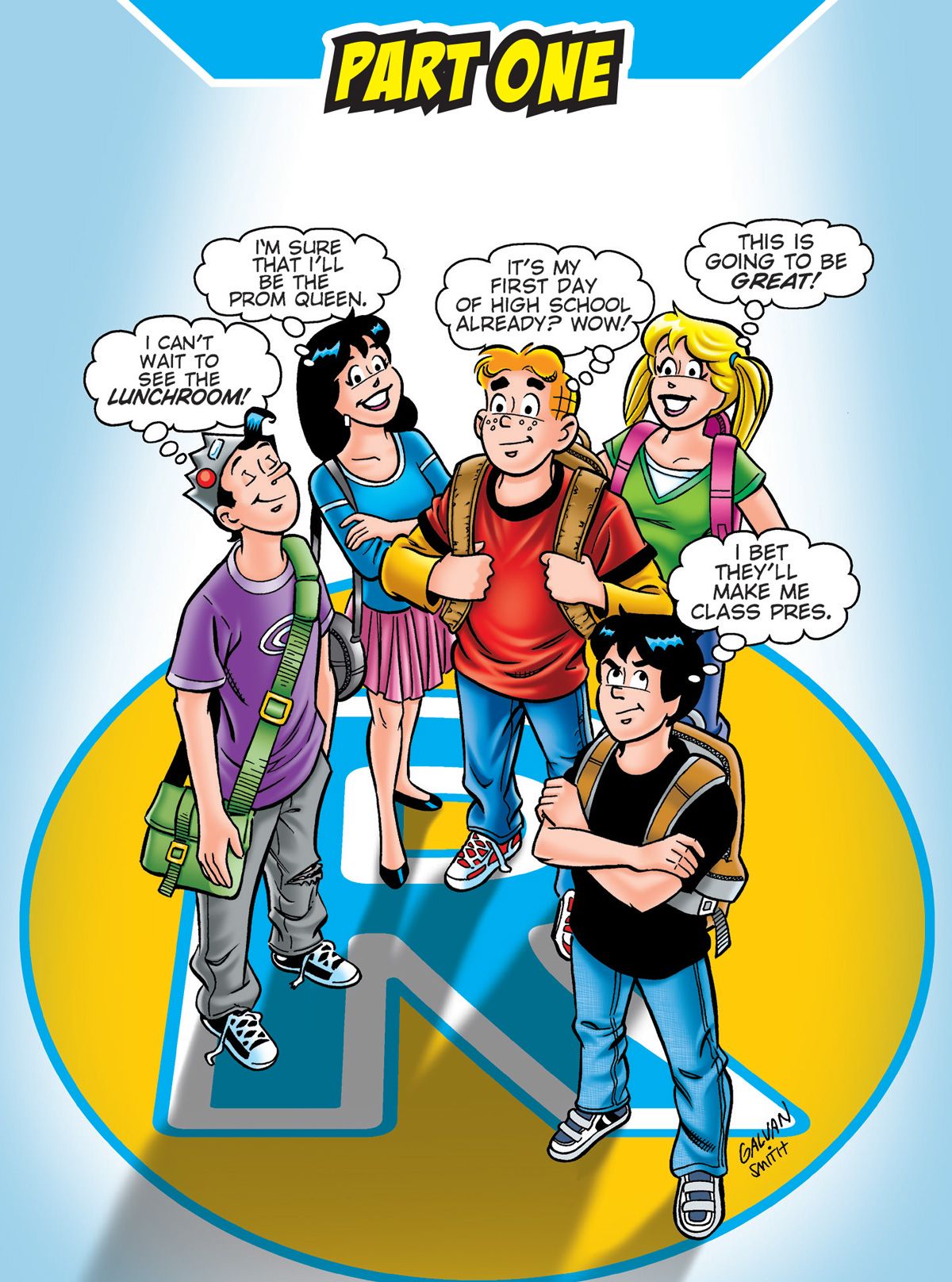 Collected for the first time in digest format… travel back in time to Archie Andrews' freshman year of high school! See how the gang first met, the beginnings of the eternal love triangle, the introduction of Mr. Weatherbee as principal of Riverdale High, the formation of Moose and Midge's relationship (and Reggie's subsequent schemes to split them up), and other Archie staples!