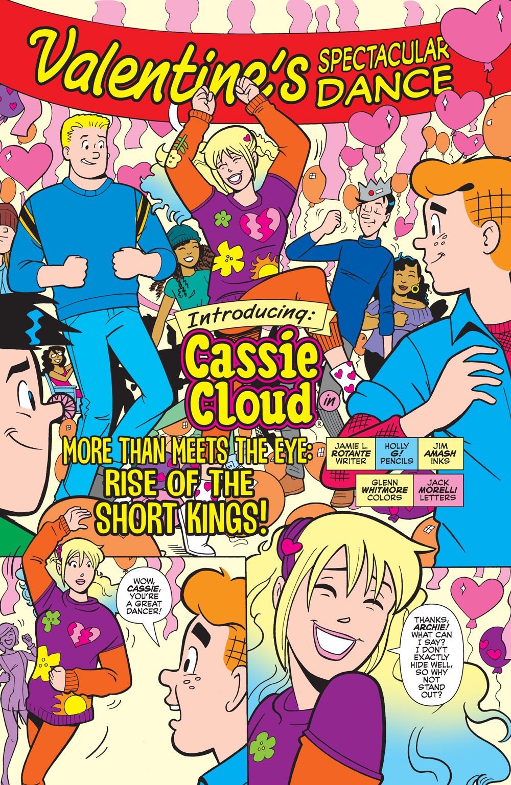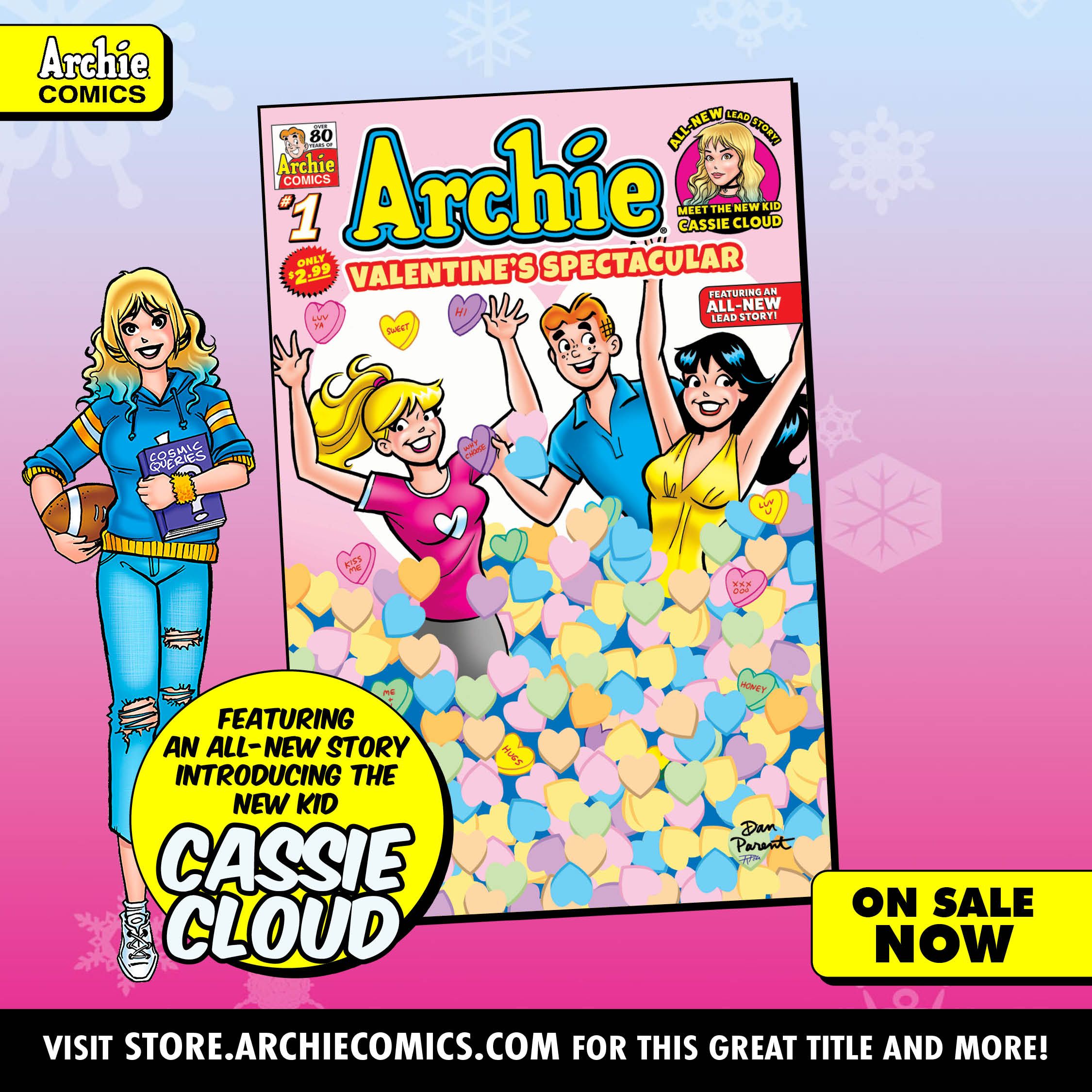 Love is in the air with a BRAND-NEW story to kick off this collection of romance tales! In "More Than Meets the Eye," a new student has arrived at Riverdale High! Cassie Cloud is tall, confident, funny, and catching all the guys' attention—much to the chagrin of the girls. But she doesn't seem interested in the most popular guys in school—instead she's been hanging with the likes of Randolph, Dilton, Toño, Raj and even Prankenstein. What can Archie and Reggie do to get her attention, without catching the ire of Betty and Veronica? The short kings rise in this new Valentine's Day tale! Plus, a collection of sweet stories perfect for that special someone!
