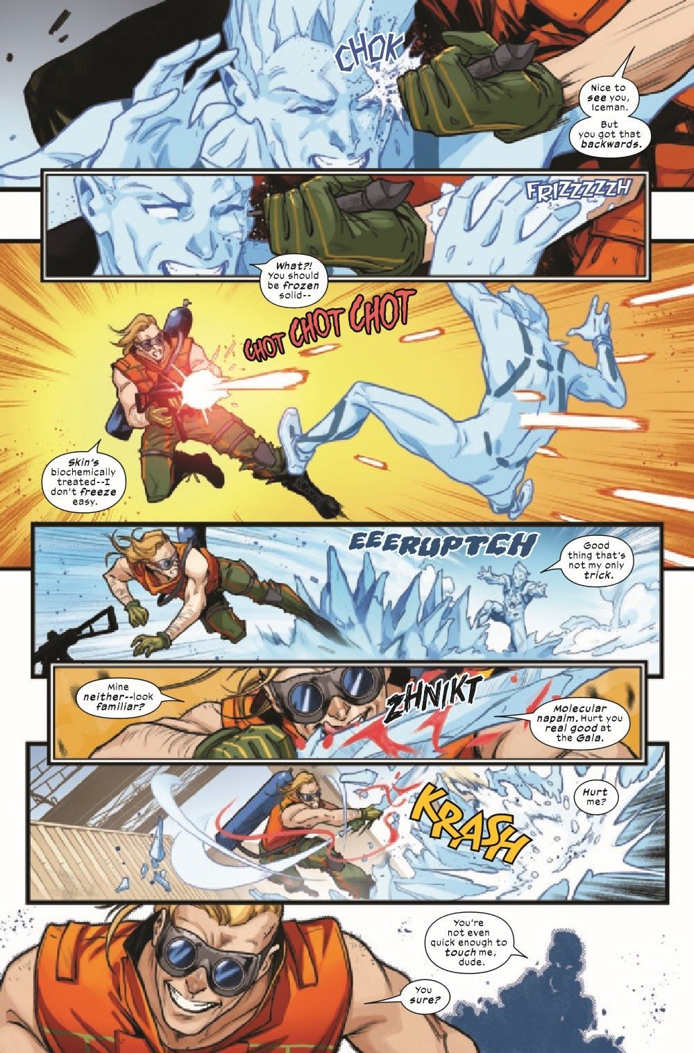 CHILLING WITH THE CAPTAIN! ORCHIS' attacks on ICEMAN are heating up! Will crossing paths with the ALL-NEW Y-MEN give BOBBY DRAKE the chance to put them down once and for all or open a new path to his own destruction? Guest-starring AARON FISCHER, the CAPTAIN AMERICA of the Railways (and showcasing his awesome new power set)!