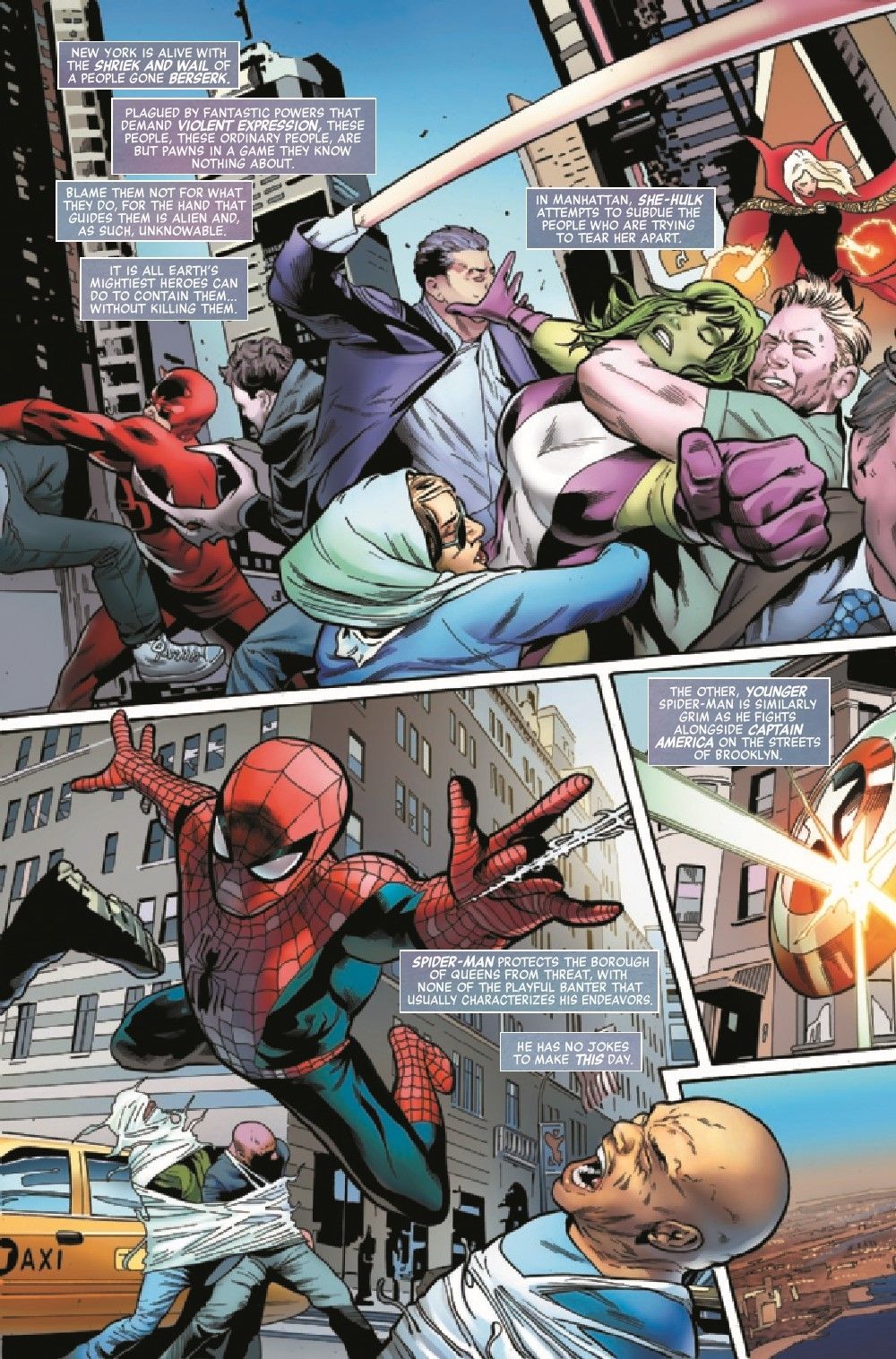 As violence tears New York apart, and ordinary citizens become crazed, super-powered thugs with nothing but wanton destruction on their minds, Janet Van Dyne – A.K.A. the wonderfully winsome Wasp – fights to save not only the lives of her fellow heroes, but also a friendship. Which is not easy when that particular friend is trying to bash her head in. • Join us for a story of nonstop action and relentless adventure that dares to ask the big questions, such as: How much punching is too much punching? The answer may surprise you.* • *But it probably won't.