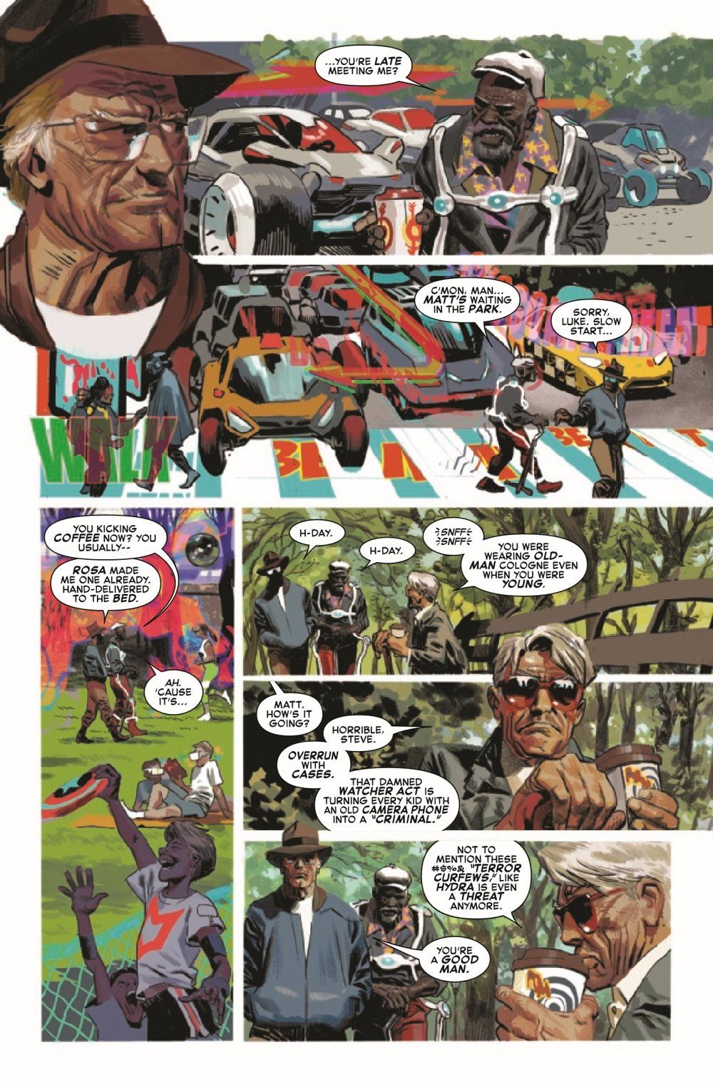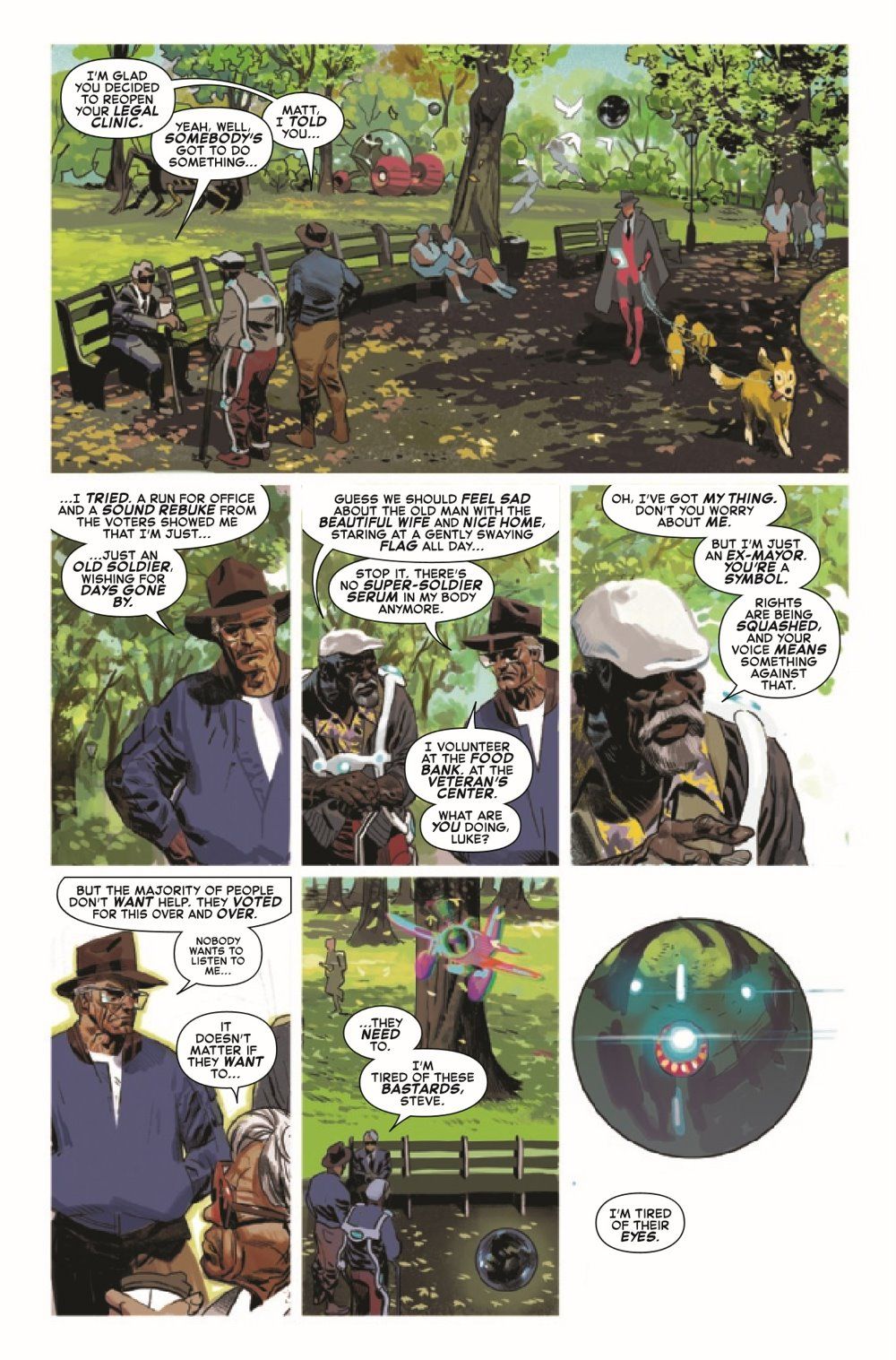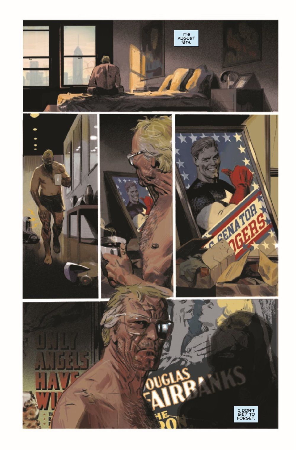 In a gleaming new world of prosperity, Captain America is no more. But Steve Rogers still exists, floating through an America where freedom is an illusion, where THE AVENGERS are strangers and his friends are long dead. But is the Dream? How do you assemble Avengers in a world that doesn't want them? PLUS: A behind-the-scenes look at the making of this issue!