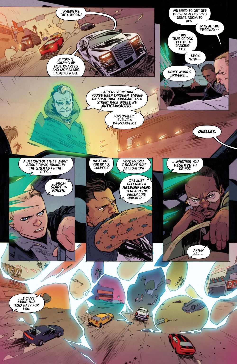 And we're back! It's the final leg of the race, and the four remaining drivers have returned to Los Angeles. It's everyone for themselves to win the grand prize; all that remains is making it across the finish line. But Quellex was never going to let them off that easy, and what awaits is their biggest challenge yet. Gotta go out with a bang, right?