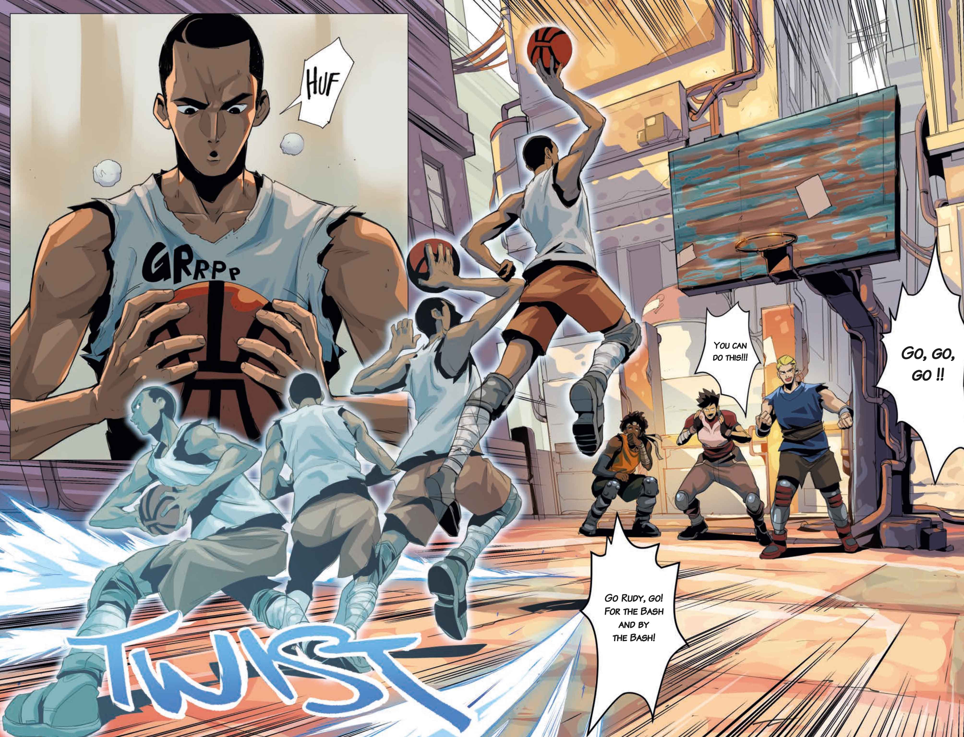 BASH — an intergalactic game of basketball played by superstar athletes from across the cosmos. Young Rudy comes from the poor neighborhood of Nevilia, but dreams of a being a BASH star, and his talent might just make it happen: but can he make it while threats come from every corner of the galaxy? Throughout the universe, there's one sport that everyone's a fan of: BASH! A brutal, high-octane version of basketball: its players are rockstars, legends, gods, and for young Rudy, a poor kid from Nevilia, his only dream is to be one of them.