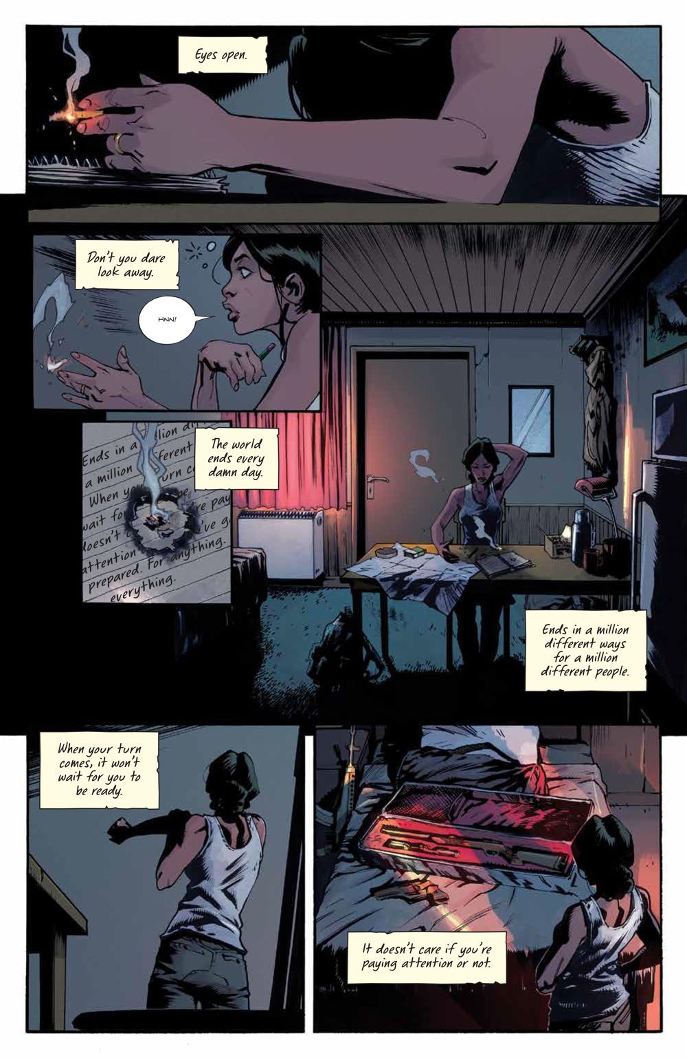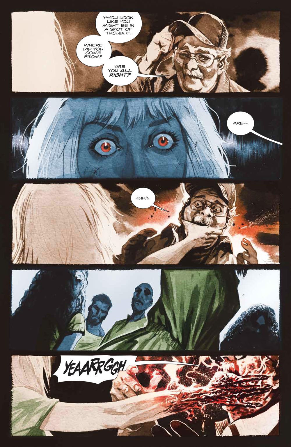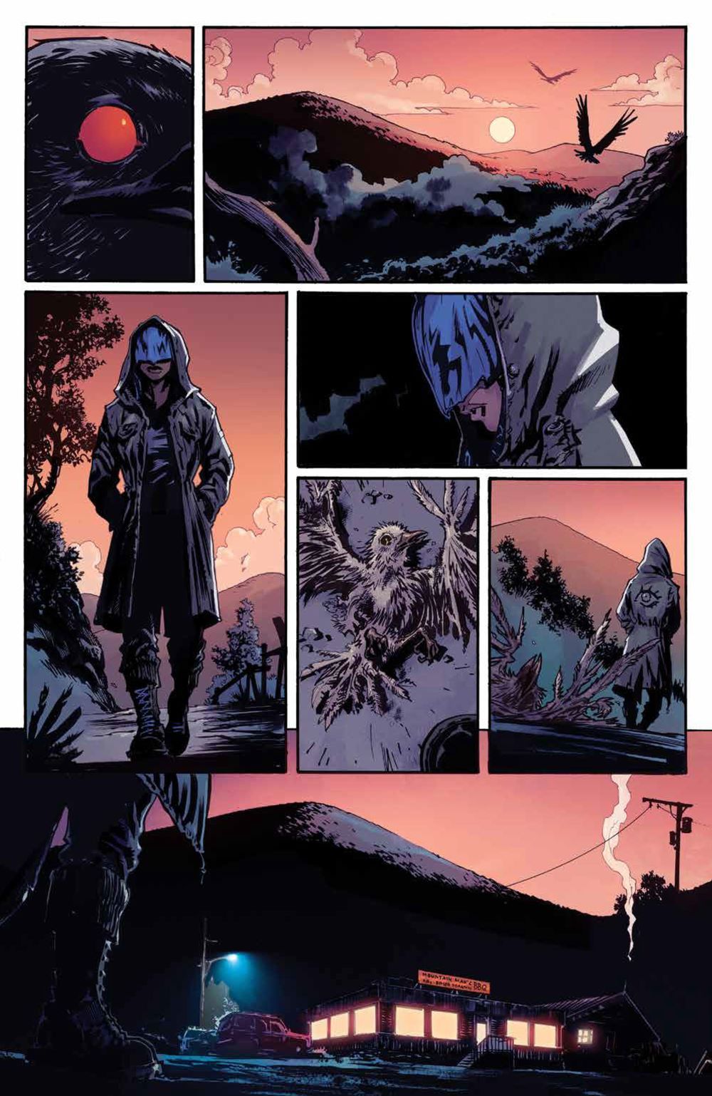 NEW SERIES. Who Can Stop The Chimera? Five individuals bound by a cult-like hivemind, they terrorized small towns with their horrifying supernatural sense-based powers, leaving death and destruction in their wake. Regan, one of the Chimera, escaped and has been in hiding, with her murderous eyes bound, overcome with guilt. Until now… when a victim from her past forces her to hunt down the other four of her kind. New York Times bestselling horror writer Cullen Bunn (Harrow County) and artist Jonas Scharf (Avengers Of The Wasteland) reunite to unleash a supernatural horror series for fans of Killadelphia and Stillwater rooted in the way we process the world - our senses.