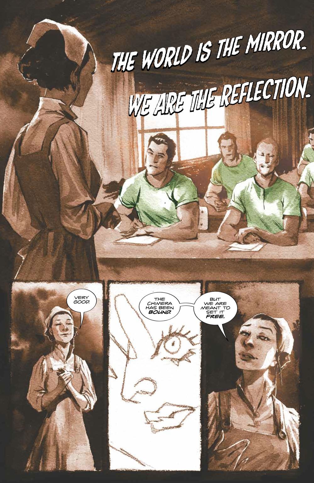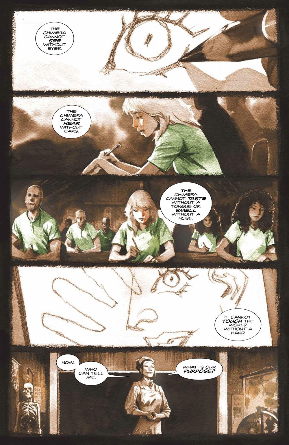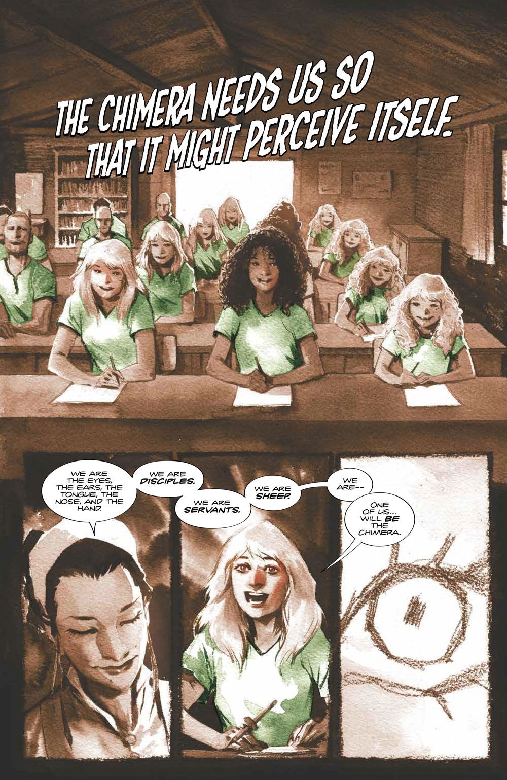 NEW STORY ARC. The third and FINAL arc of the hit horror series from Cullen Bunn and Jonas Scharf begins! Vanessa and the Five reflect on their strange life as children, the cult, and the truth about the Chimera's nature. Meanwhile Regan remembers the grim role she played in Hannah's greatest tragedy while checking on her, but it's not long before Barret brings her terrifying news of the Chimera…