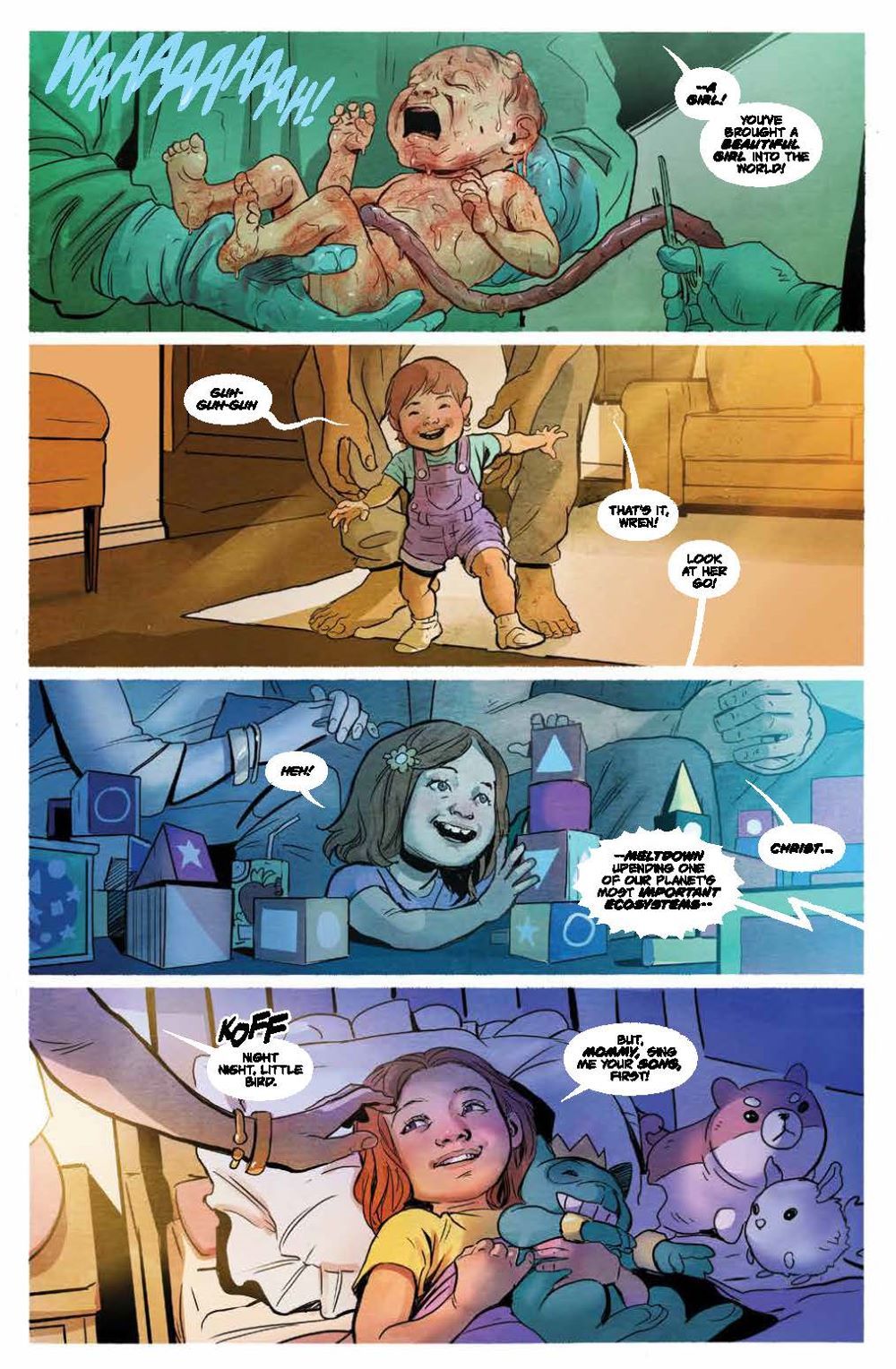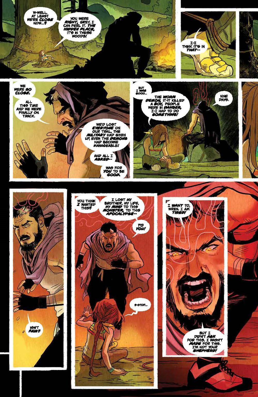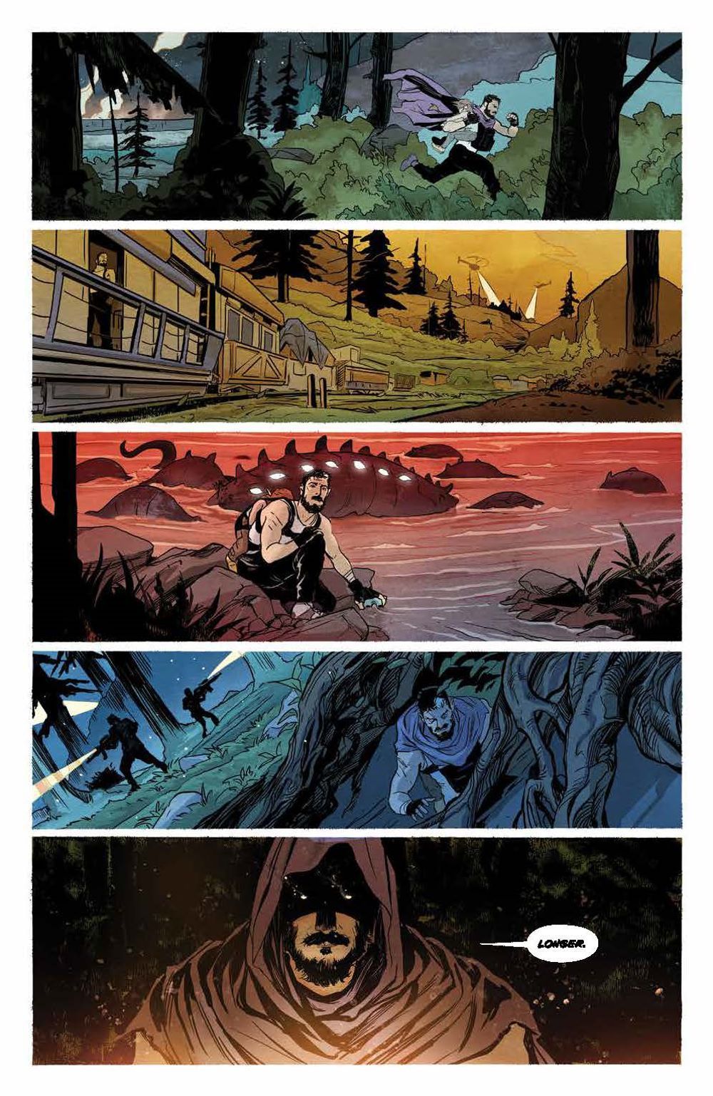 PENULTIMATE ISSUE. Grey and Wren return to where it all began–the birthplace of the Behemoths. But a figure from the past still pursues them, deadlier than ever before, leaving a trail of blood in their wake…