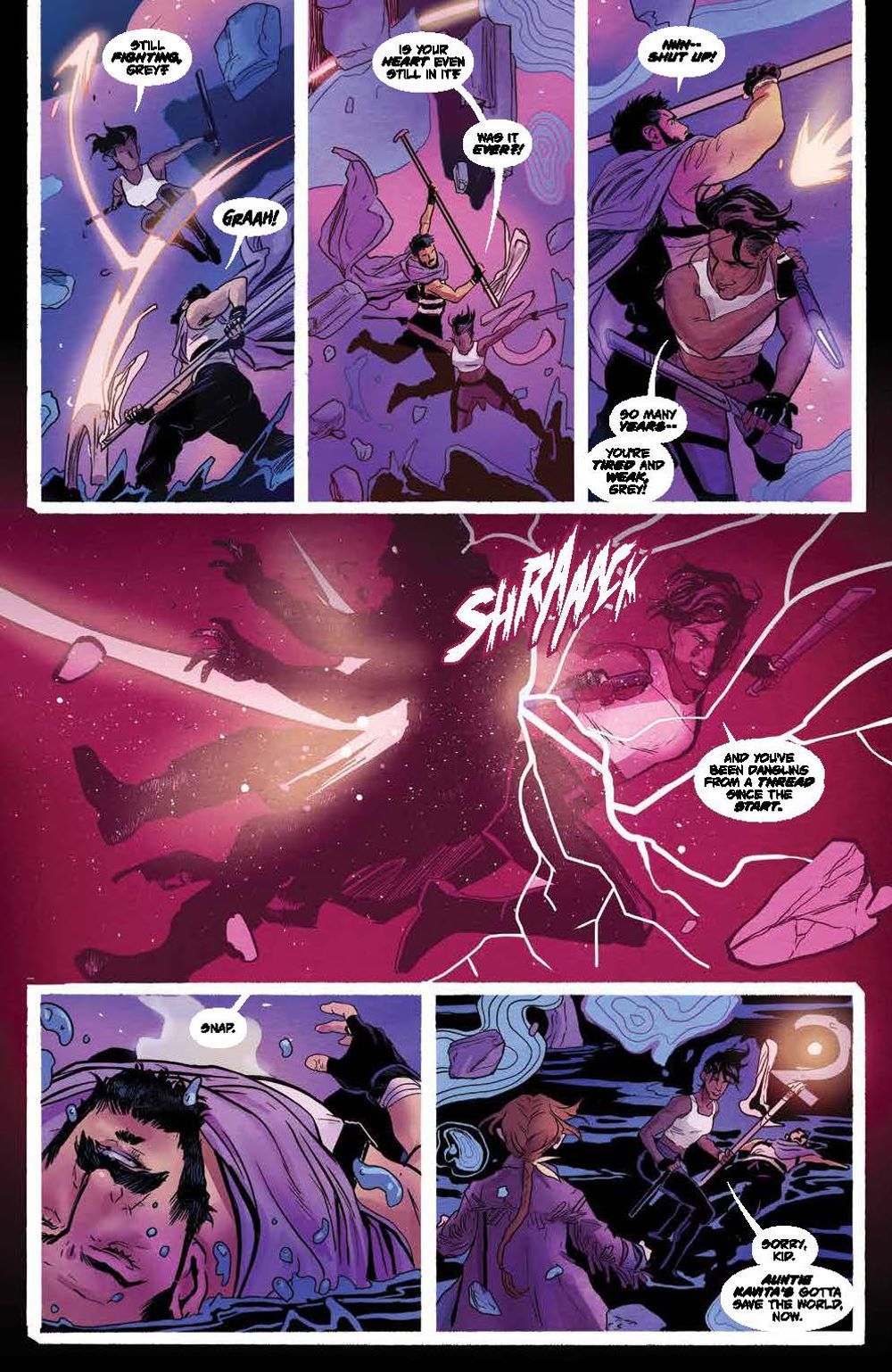 FINAL ISSUE. In the heartbreaking FINAL ISSUE, Grey and Wren find themselves closer than ever to finding answers about who, and what, the Behemoths are! Kavita has ulterior motives though–ones that may be deadly to Wren, and put Grey in an impossible choice.