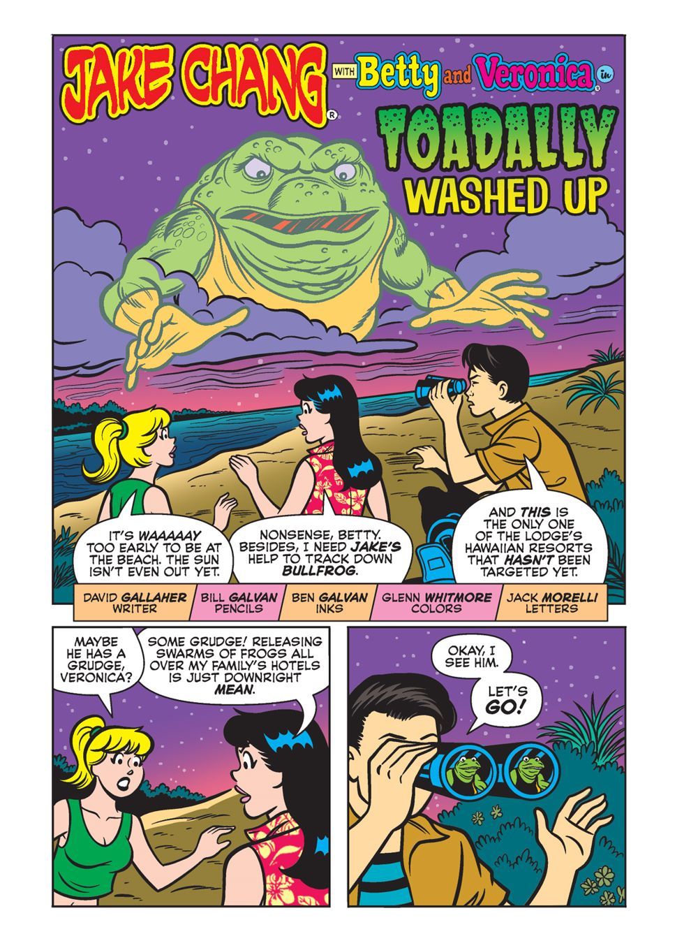 Then, in "Toadally Washed Up," when Hawaii is overrun by the villainous Bullfrog, international detective Jake Chang is on the case! With some surprise help from Betty and Veronica, the three must hop to the rescue to stop potential disaster!