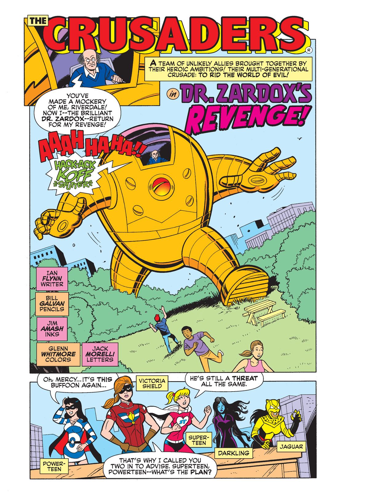 Then, in "Dr. Zardox's Revenge," Dr. Zardox is a villainous old man with a robot that does his bidding, and he's got his sights set on Riverdale (let's be real here: who doesn't?!). The Crusaders and Superteens will have to team up once more to take him down!