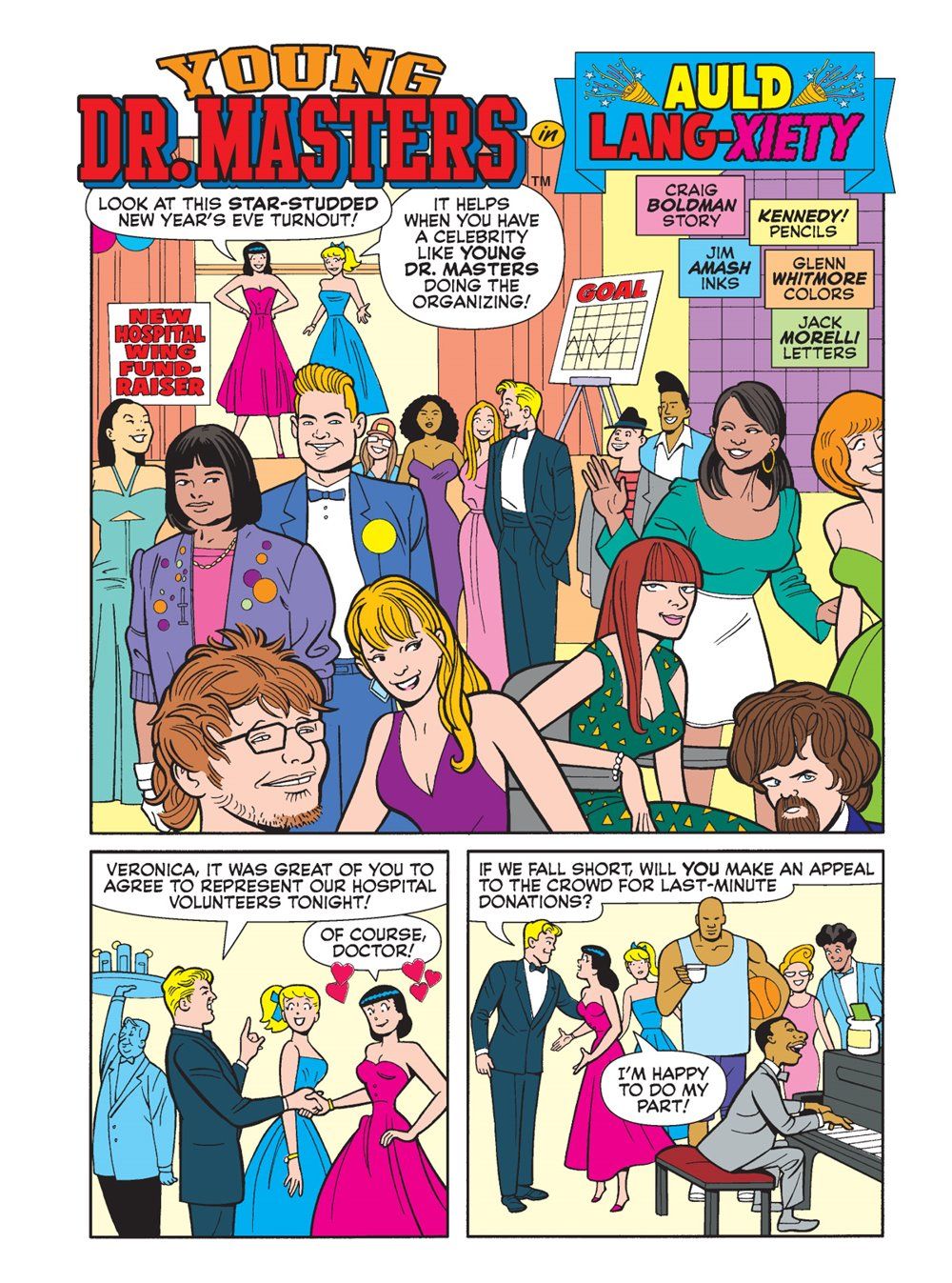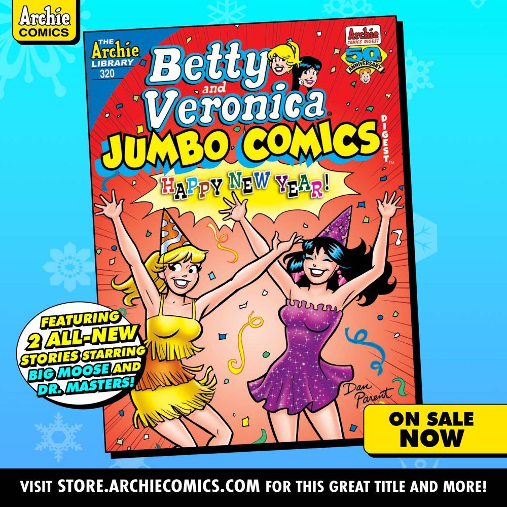 TWO BRAND NEW STORIES! First, it's New Year's Day, and Moose is on his way to a date with Midge—but what starts out as a normal day leads to a snowy adventure! Then, Can Veronica end the year without breaking her last New Year's resolution? The answer could mean disaster for Young Doctor Masters!