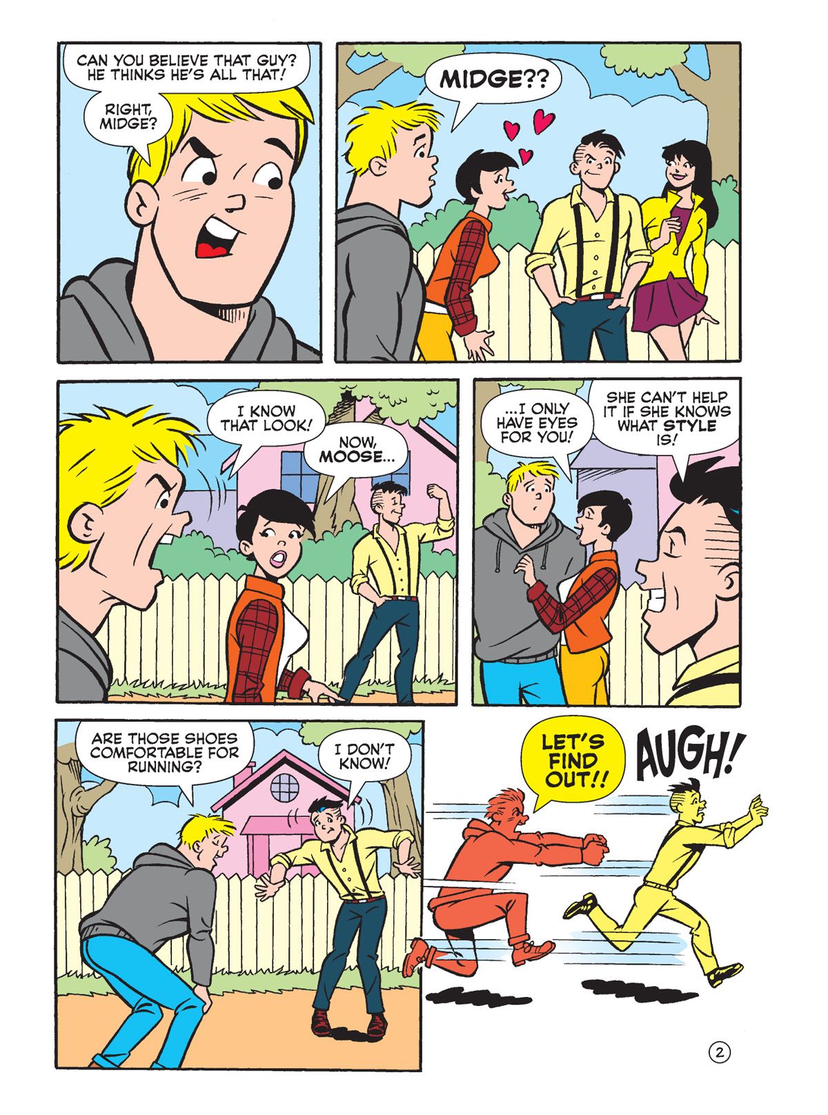 TWO BRAND NEW STORIES! First, Moose is jealous of Reggie because Midge thinks he's attractive, but Moose feels he has no sense of style… so it's B and V to the rescue! Then, things get spooky in Pop’s Chock’lit Shoppe (of Horrors!). On a quest to unravel the source of ghoulish happenings, Betty and Veronica stumble upon a dark portal beneath Pop's Chocklit Shoppe, and with the help of an unexpected phrase, they unleash and then quell its supernatural chaos. ...Or did they?